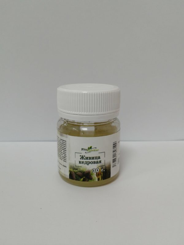 Регулярное применение живицы восстанавливает защитную функцию клеток на молекулярном уровне, приводит к улучшению мозгового и периферического кровообращения. Способствует насыщению органов и тканей ки... Показать описаниеслородом и приводит в действие механизм зарождения новых клеток (линолевая кислота), снижает или устраняет нарушение жирового обмена, защищает кожу от вредного действия воды и делает ее упругой (линолевая кислота). Показания к применению: Сахарный диабет, дисфункция щитовидной железы. 3-4 раза в день по 2-3 капли под язык за два часа до еды. Полиартрит — втирать в область суставов и принимать внутрь раз в день 3-4 капли. Остеохондроз, артрит, ревматизм, радикулит — проводить массаж с живицей по 12-15 сеансов ОРЗ — производить втирания в кожу вокруг носа, в подчелюстной и затылочной областях. Закапывать в нос по 2-3 кали. ГРИПП — 2-4 раза раза в течение дня закапывать в рот 5 капель. Растереть живицей грудь, спину, ноги, руки. Повторять процедуру каждые 5-6 часов, т.е. 4 раза в сутки. Заболевание легких и дыхательных путей — производить ежедневные растирания живицей спины и груди. Одновременно 2 раза в день принимать внутрь по 6-10 капель. Гайморит, насморк — закапывать в нос или смазывать нос ватным тампоном. Втирать живицу в область гайморовых пазух. Ожоги, обморожения — пропитать живицей повязку и приложить к больному месту. Ранозаживляющее средство — нанести на открытую (закрытую) рану или место внутреннего нарыва слой. Повторять до полного заживления. В подавляющем большенстве случаев не остается даже рубцов и шрамов. Туберкулез — курс: 7 дней лечения, 7 дней отдыха, снова 7 дней лечения, 7 дней отдыха и 7 дней лечения. Суточная доза приема живицы 3 раза по 5-7 капель. Запивать горячим молоком или морковным соком. Регулирование давление крови — Лечение следует начинать с одного раза в день по 3 раза в день по 6 капель. Курс лечения составляет 30 дней, для лиц более зрелого возраста 40-45 дней с повтором через один — два месяца 2-3 недельного курса. Мокнущая и сухая экзема — Смазывать два раза в день. Одновременно принимать внутрь 3 раза в день по 8-10 капель в течение 20 дней. Лишаи, грибки, юношеские угри — втирать в чистую кожу. Фурункул, карбункул — наложить на больное место компресс на 1-2 дня. Стенокардия, аритмия, тахикардия — в начале приступа сделать втирание в область сердца. Для профилактики рекомендуется производить в течение месяца втирания совместно с приемом внутрь один раз в день по 5 капель. Воспаление тройничного нерва — втирать по ходу нерва 4-5 раз в сутки с приемом внутрь по 5-6 капель 3 раза в день. Курс лечения составляет от 5-7 дней до 2-2,5 месяцев. Болезни желудочно-кишечного тракта — по 5-6 капель живицы утром на тощак за 15 минут до еды. Продолжительность курса лечения 30-35 денй. Два — три курса лечения помогают восстановить микрофлору кишечника и избавить от дизбактериоза. Прием живицы ведет к оздоровлению не только желудка и кишечника, но и печени, поджедудочной железы и почек. Болезни почек и мочевого пузыря — при камнях и песке в почках и мочевом пузыре принимать по 10-15 капель в сутки. Пить натощак утром. на ночь втирать досуха в область низа живота и пояснице 4-5 капель. Печень и желчный пузырь — принимать живицу по 1ч.л.в течение 10 дней натощак один раз в сутки, с отдыхом в 10 дней и повторным курсом. Этим способом кедровая ж