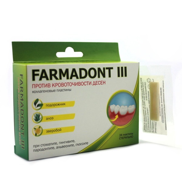 FARMADONT коллагеновые пластины против кровоточивости с подорожником, алоэ и зверобоем №24Вопросы по товару