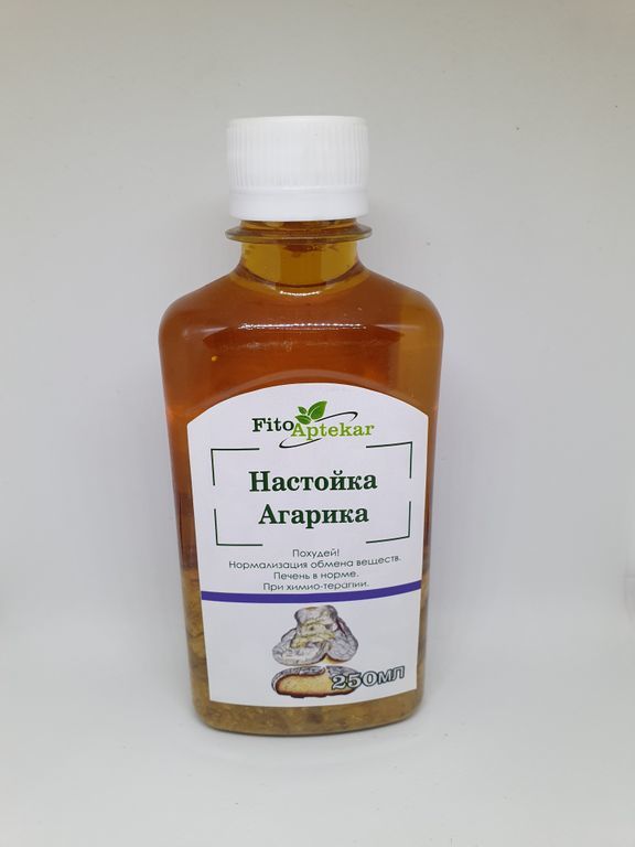Показания к применению: При туберкулёзе, пневмонии, бронхите, раке легких и бронхов. Её применяют при проведении химио и радио терапии. Хорошие показатели в лечении гепатита В, С, базедовой болезни, д... Показать описаниеиабета. Эффективна настойка при стеатозах и циррозах печени, опухолях и кистах в области печени, абсцессах, избыточном весе. Трутовик останавливает вирусную активность: борется с гриппом, ОРВИ, ОРЗ, герпесом, уничтожает патогенную флору желчевыводящих путей, полипы, лямблии, аутоиммунные заболевания лимфы и крови, жировой гипотоз. Обладает блокирующим эффектом при метастазах, препятствует скоплению жидкости. Способ применения: Общая схема: Принимать по 20-30 капель 3 раза в день за 30 минут до еды. При злокачественных новообразованиях 1-2 стадии назначают по 60 капель 3 раза в день за 30 минут до еды, разбавив в 50 мл воды. С 4-5 стадии, по 120-180 капель 3 раза в день за 30 минут до еды, разбавив в 50 мл воды. При доброкачественных опухолях, миомах, мастопатии, кисты, липомы, жировики по 40 капель 3 раза в день за 30 минут до еды. Противопоказания: Не рекомендуется беременным и кормящим женщинам, при индивидуальной непереносимости компонентов БАД. Перед применением рекомендуется проконсультироваться с врачом. Срок хранения настойки 3 года. Условия хранения — Хранить в защищённом от прямых солнечных лучей месте Условия отпуска. Без рецепта. Не является лекарственным средством. Не занимайтесь самолечением. Упаковка. Флаконы по 100, 250 мл, 50 мл. Состав: Вытяжка Агарика на трехатомном спирте. Перед применением рекомендуется проконсультироваться с врачом.