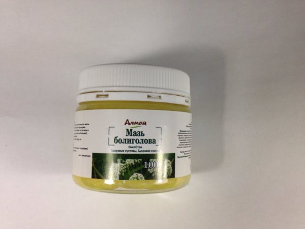 В народной медицине болиголов применяется в основном при лечении раковых заболеваний, быстро прогрессирующих опухолях, раке кожи, а также как успокоительное, противосудорожное и болеутоляющее средство... Показать описание при болезненных состояниях, сопровождающихся судорогами и спазмами внутренних органов и мышц. Болиголов пятнистый используется в традиционной и народной медицине для устранения очагов воспаления, восстановления иммунитета, лечения онкологических заболеваний, уменьшения болевого синдрома. Это ядовитое растение, которое внешне напоминает петрушку. Многолетник зонтичного типа произрастает на территории европейских стран с умеренным климатом. Передозировка может послужить причиной сильного отравления, так как в составе содержится большое количество алкалоидов. Небольшие терапевтические дозы лечебного болиголова помогают восстановить защитные силы организма и повысить выработку антител. Мазь на основе растения применяется для профилактики следующих заболеваний: рак кожи; экзема; дерматиты; псориаз; мокнущие раны; рубцы и шрамы; эндометриоз; фиброма; аденома простаты; мастопатия; кистозные образования; полипоз. В состав крема с болиголовом входят природные компоненты, оказывающие обезболивающее, противовоспалительное, антибактериальное действие: Алкалоиды. В малых количествах эти токсичные вещества стимулируют выработку антител, уничтожает раковые клетки. Флавоноиды укрепляют резистентные силы организма, улучшают обмен веществ, выводят токсины и шлаки. Кофейная кислота обладает мощным антиоксидантным эффектом, снимает воспаление, замедляет процессы окисления в организме, препятствует появлению признаков преждевременного старения. Кумарины. Эти природные соединения разрушают злокачественные образования, используются в качестве профилактического средства против тромбоэмболии, обладают противовирусным, антибактериальным и противогрибковым действием. Купить мазь на основе болиголова вы можете в нашем интернет-магазине. Оказывает воздействие при заболеваниях: Мазь болиголова применяется для лечения онкологических заболеваний, мастопатии и фиброаденомы молочной железы, наружных опухолей, жировиков, прыщей, порезов, волдырей (при ожоге, водном зуде), узлового зоба и кист, гайморита, фронтита, бронхолёгочных воспалений, подагры, деформирующего артроза, полиартрита, остеохондроза, суставного ревматизма. При микротрещинах в заднепроходном отверстии, геморрое, ушибах, рожи, системной красной волчанке, варикозном расширении вен, тромбофлебите, гангрене, слоновой болезни, судорогах, невритах, простатите. Особенно эффективна при воспалении лимфоузлов. Курс лечения — минимум один месяц. Противопоказания: беременность, лактация. Рекомендуем купить мазь болиголова для лечения различных заболеваний. Перед применением рекомендуется проконсультироваться с врачом.