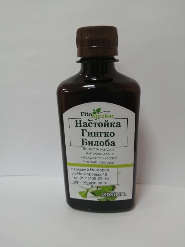 Настойка Гинкго — мощный стимулятор умственного потенциала, внимания и памяти. Рекомендуется: -при сердечно-сосудистых заболеваниях; -при церебрально-сосудистой недостаточности; -при рассеянном склеро... Показать описаниезе; -при начальной стадии болезни Альцгеймера; -при возрастных нарушениях умственных способностей; -при плохом кровоснабжении конечностей; -при варикозном расширении вен; -при тромбофлебите; -при хроническом бронхите, астме; -для ликвидации последствий инсульта; -при сосудистых заболеваниях уха, снижении слуха; -при головокружении; -при мигрени; -при геморрое; -при импотенции; -при диабете; -при зябкости пальцев рук и ног. Показания к применению 10-15 капель настойки гинкго на полстакана воды 2 раза в день до еды. Курс лечения 1 месяц. Рекомендуется проводить 3 курса в год. При регулярном приёме препарата его благоприятное действие сохраняется.При расчете количества флаконов настойки на курс воспользуйтесь следующей информацией: в 1 мл содержится 20 капель настойки. При максимальной дозировке 15 капель на приём одного флакона 250 мл хватит приблизительно на 112 дней. Состав: водочный экстракт гинкго билоба Противопоказания беременность, лактация, индивидуальная непереносимость,бронхиальная астма,эпилепсия. Перед применением проконсультироваться с врачом.