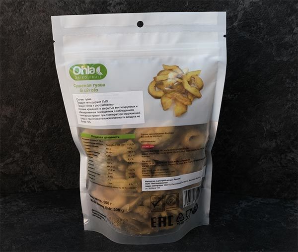Масса нетто в г,: 500.Страна происхождения: Вьетнам.Производитель: Ohla.Состав: Гуава сушеная 100% натуральный продукт, не содержит ГМО.Срок хранения: 12 месяцев.Условия хранения: при температуре от 0... Показать описание до 18 г по Ц , открытую упаковку держать в холодильнике.Энергетическая ценность на 100 г,: 308 кКал.Белки, г,: 1,27.Углеводы, г,: 80,3.Жиры, г: 1,73
