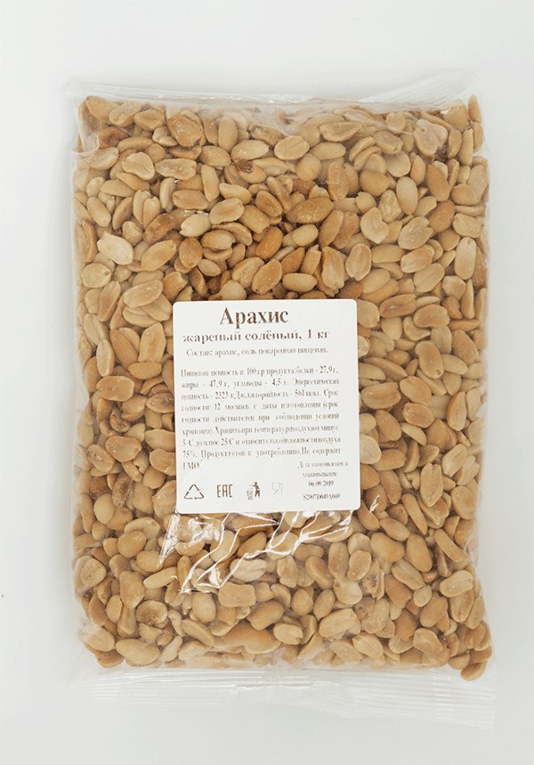 Масса нетто в г,: 1000.Страна происхождения: Россия.Состав: арахис(ядро), соль, вкусовая добавка.Срок хранения: 10 месяцев.Условия хранения: при температуре не выше +25 С при относительной влажности в... Показать описаниеоздуха не более 75%.Энергетическая ценность на 100 г,: 633 кКал.Белки, г,: 26,3.Углеводы, г,: 15,6.Жиры, г: 52,2