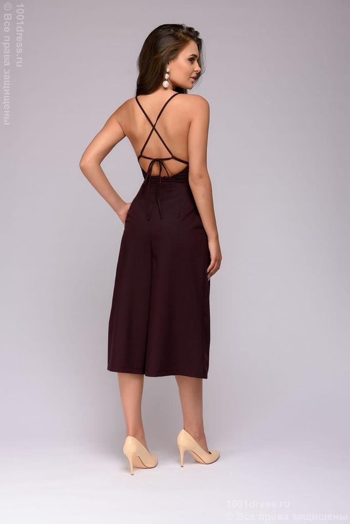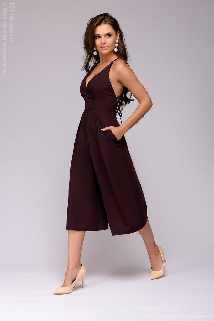 Цвет: сливовый. Ткань: костюмная. Длина по спинке: 112 см. Состав: 71% полиэстер, 22% вискоза, 7% эластан. Уход: деликатная машинная стирка при 30 градусах, утюжка без пара. Сезон: лето allsize: 40,42... Показать описание,44,46,48. Длина рукава (определение): на бретелях. Категория: комбинезоны. Прилегание: полуприлегающее. Горловина: глубокий вырез. Принт: однотонный. Спинка: открытая. Страна производства: Россия. По назначению: повседневное Фильтр по ткани: вискоза, полиэстер. Стиль: повседневный Стильный комбинезон на бретелях с брюками-кюлотами. Идеальный вариант для тех, кто хочет разнообразить свой летний гардероб.