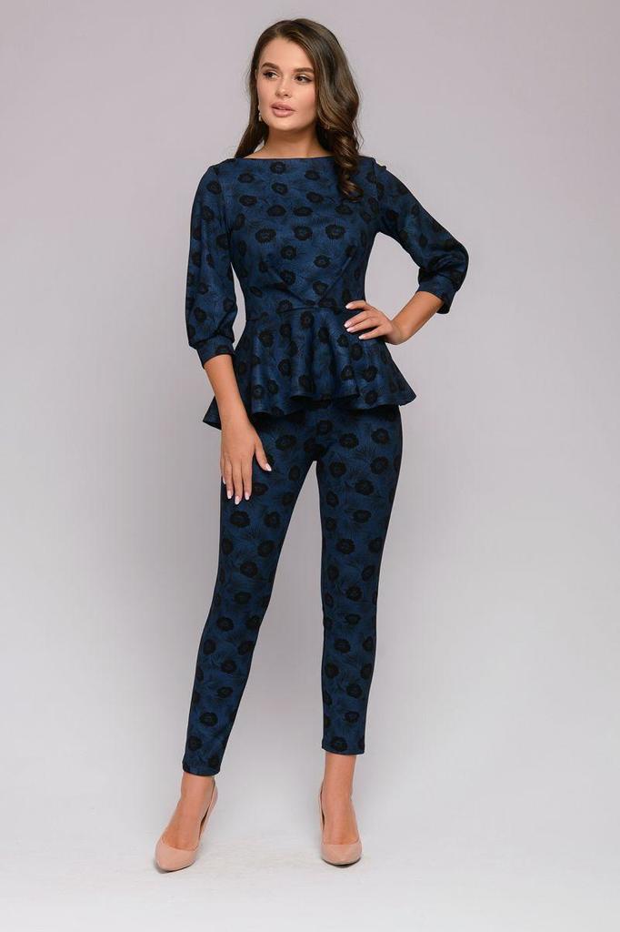 Цвет: темно-синий (принт). Ткань: трикотаж джерси. Длина рукава: 43 см. Длина по спинке: 62 см. Состав: 68% Вискоза, 27% Нейлон, 5% Эластан Комплектация: топ, брюки. Уход: деликатная машинная стирка п... Показать описаниери 30 градусах. Сезон: осень Разрешена реализация под заказ: Нет allsize: 40,42,44,46,48. Длина рукава (определение): 3-4. Категория: комплекты. Прилегание: прилегающее. Горловина: вырез лодочка. Принт: крупный принт. Спинка: закрытая. Тип карманов: без карманов Страна производства: Россия. По назначению: повседневное Вид застежки: молния Фильтр по ткани: вискоза Длина низа (для комплектов): 90 Костюм темно-синий с крупным принтом состоит из топа с модной баской и облегающих брюк. Модель выполнена из трикотажа джерси, поэтому даже в холода вы будете стильной.