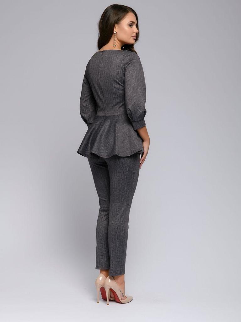 Цвет: серый (принт). Ткань: трикотаж джерси. Длина рукава: 43 см. Длина по спинке: 90 см. Состав: 60% Полиэстер, 35% Вискоза, 5% Эластан Комплектация: брюки, топ. Уход: деликатная машинная стирка при ... Показать описание30 градусах. Сезон: осень Разрешена реализация под заказ: Нет allsize: 40,42,44,46,48. Длина рукава (определение): 3-4. Категория: комплекты. Прилегание: прилегающее. Горловина: вырез лодочка. Принт: мелкий принт. Спинка: закрытая. Тип карманов: без карманов Страна производства: Россия. По назначению: деловой стиль Вид застежки: молния Фильтр по ткани: вискоза, полиэстер Длина низа (для комплектов): 90 Костюм серый с мелким принтом состоит из топа с модной баской и облегающих брюк. Модель выполнена из трикотажа джерси, поэтому даже в холода вы будете выглядеть стильно.