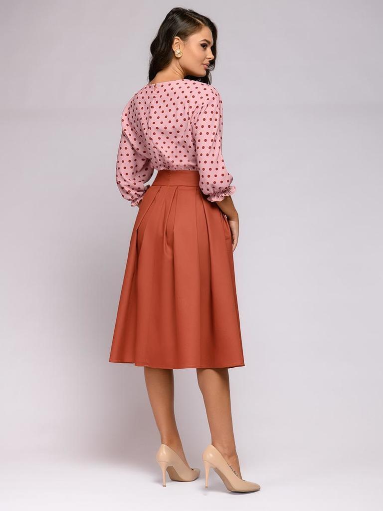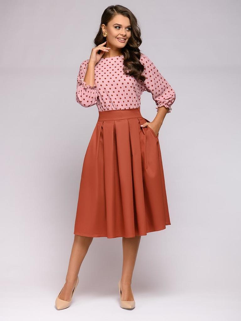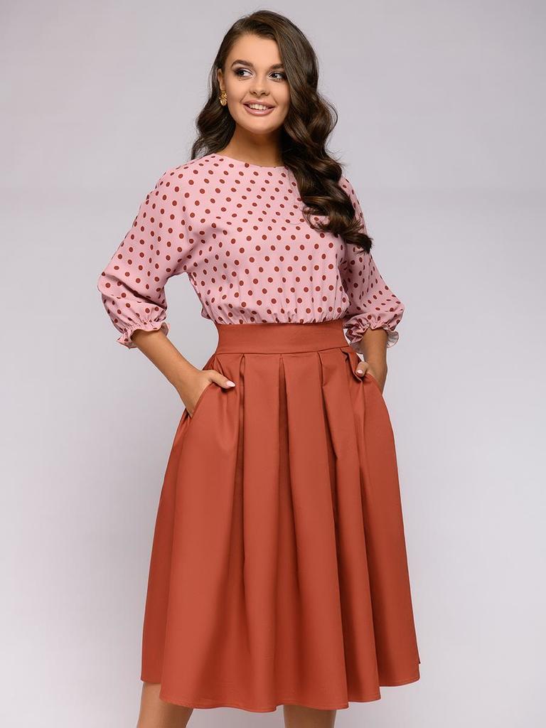 Цвет: терракотовый (принт). Ткань: плательная - костюмная. Длина рукава: 50 см. Длина по спинке: 115 см. Состав: Состав верха: 100% полиэстер. Состав низа: 65% хлопок, 32% полиэстер, 3% эластан Компле... Показать описаниектация: платье. Уход: деликатная машинная стирка при 30 градусах. Сезон: весна allsize: 40,42,44,46,48. Длина рукава (определение): 3-4. Категория: повседневные платья. Прилегание: полуприлегающее. Горловина: без воротника. Принт: двух (трех) цветное. Спинка: закрытая. Тип карманов: в шве Страна производства: Россия. По назначению: повседневное Вид застежки: молния. Юбка: складки Платье длины миди выглядит как комплект из персиковой юбки-солнца и розовой блузы в горошек. Рукава «летучая мышь» и воланы на манжетах добавляют образу еще больше очарования.