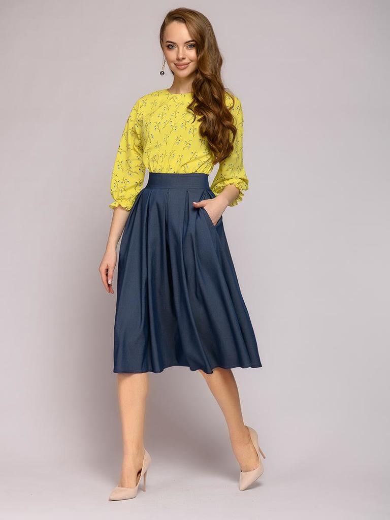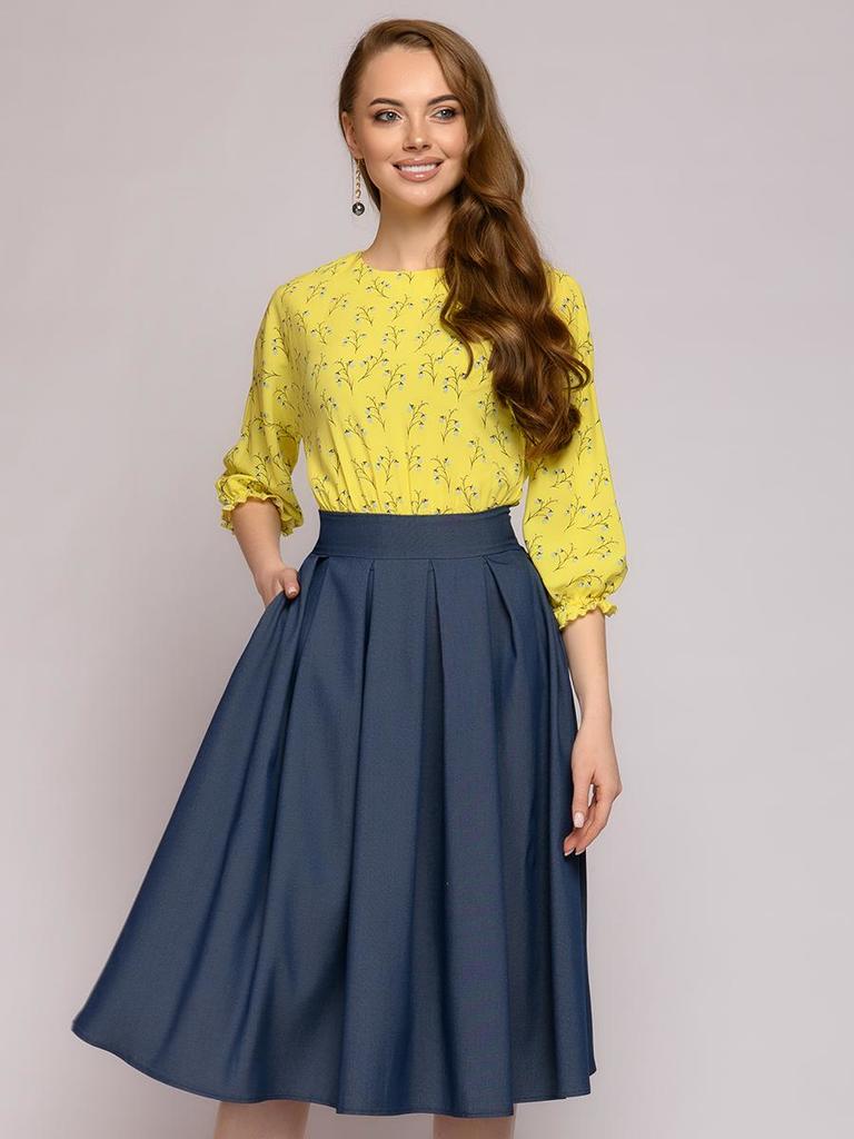 Цвет: желтый (принт) - синий. Ткань: плательная - джинсовая. Длина рукава: 50 см. Длина по спинке: 115 см. Состав: Состав верха: 100% полиэстер. Состав низа: 70% район , 27% полиэстер, 3% эластан Комп... Показать описаниелектация: платье. Уход: деликатная машинная стирка при 30 градусах. Сезон: весна allsize: 40,42,44,46,48,50,52,54-56. Длина рукава (определение): 3-4. Категория: повседневные платья. Прилегание: полуприлегающее. Горловина: без воротника. Принт: двух (трех) цветное. Спинка: закрытая. Тип карманов: в шве Страна производства: Россия. По назначению: повседневное Вид застежки: молния. Юбка: складки Платье с контрастным верхом и низом подойдет для любой фигуры, в том числе девушкам размера Plus Size. Летящий фасон юбки и объемные рукава сделают образ изящным.