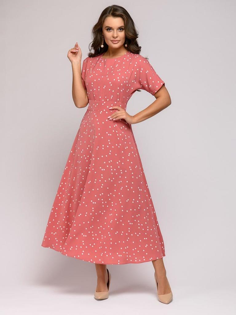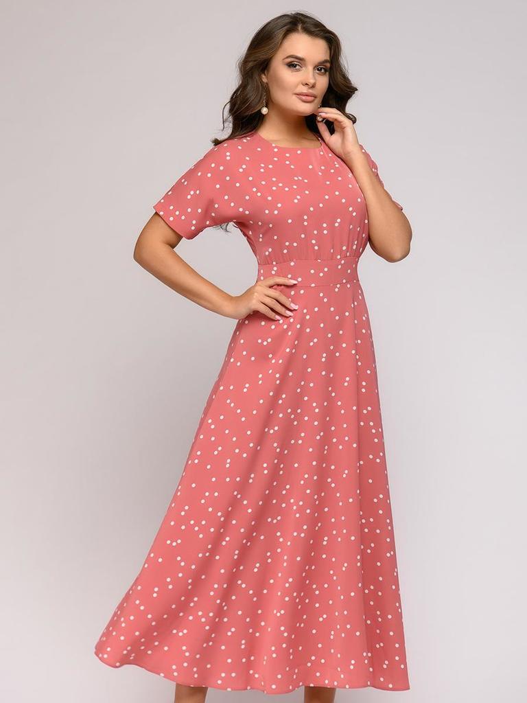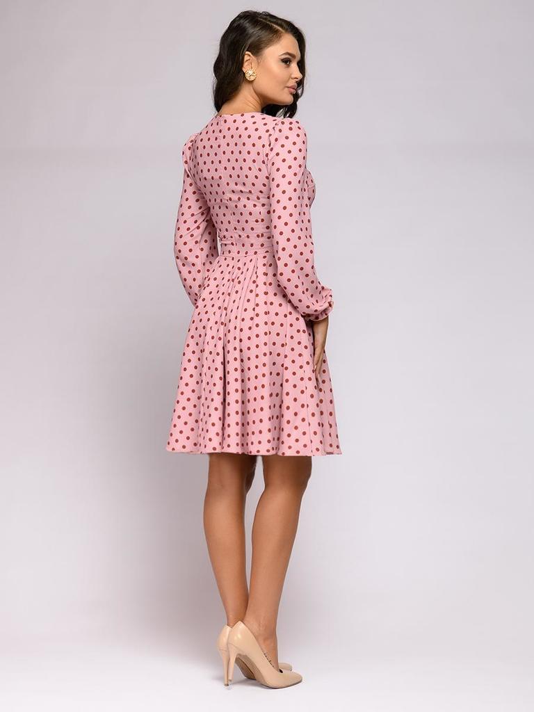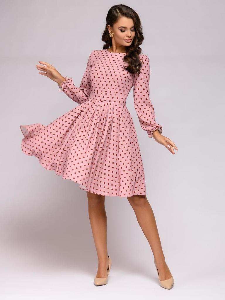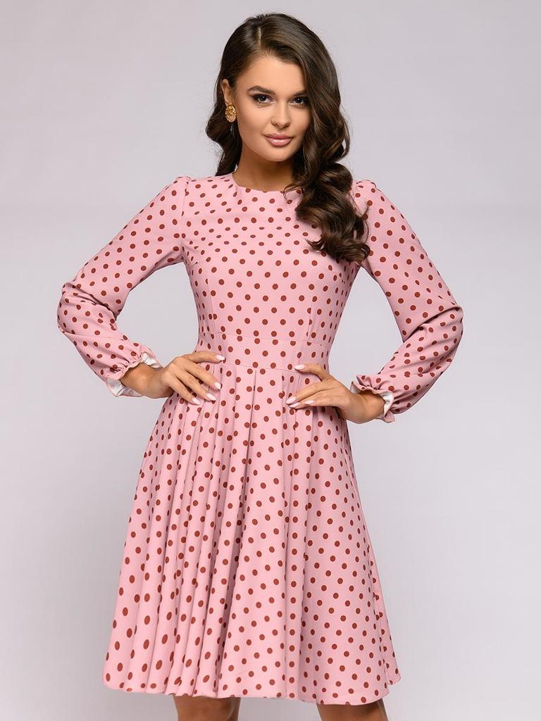 Цвет: розовый (принт горошек). Ткань: плательная. Длина рукава: 57 см. Длина по спинке: 92 см. Состав: 100% полиэстер Комплектация: платье. Уход: деликатная машинная стирка при 30 градусах. Сезон: вес... Показать описаниена allsize: 40,42,44,46,48. Длина рукава (определение): длинный. Категория: повседневные платья. Прилегание: полуприлегающее. Горловина: без воротника. Принт: мелкий принт. Спинка: закрытая. Тип карманов: без карманов Страна производства: Россия. По назначению: повседневное Вид застежки: молния. Юбка: расклешенная Платье нежного розового цвета в горошек — все, что нужно для создания романтичного образа. Длинные рукава, расклешенная юбка и приталенный крой дополнят общее приятное впечатление.