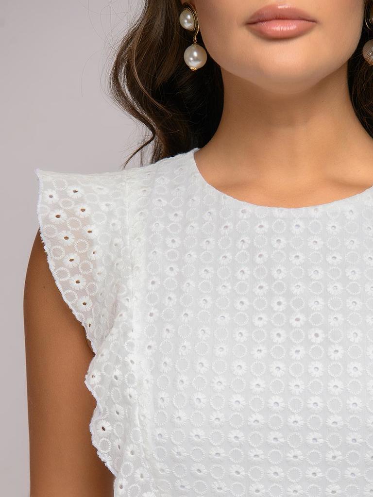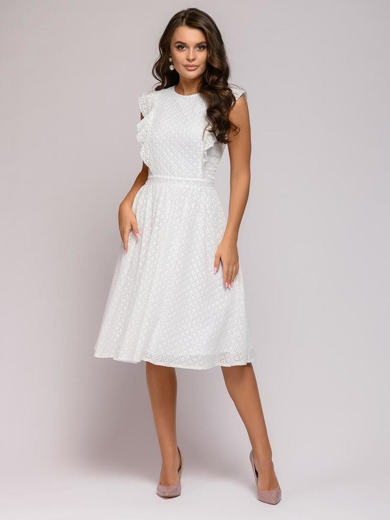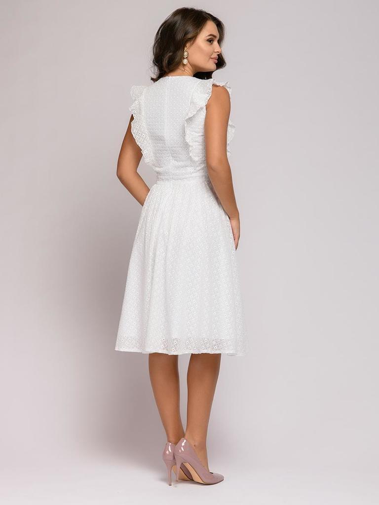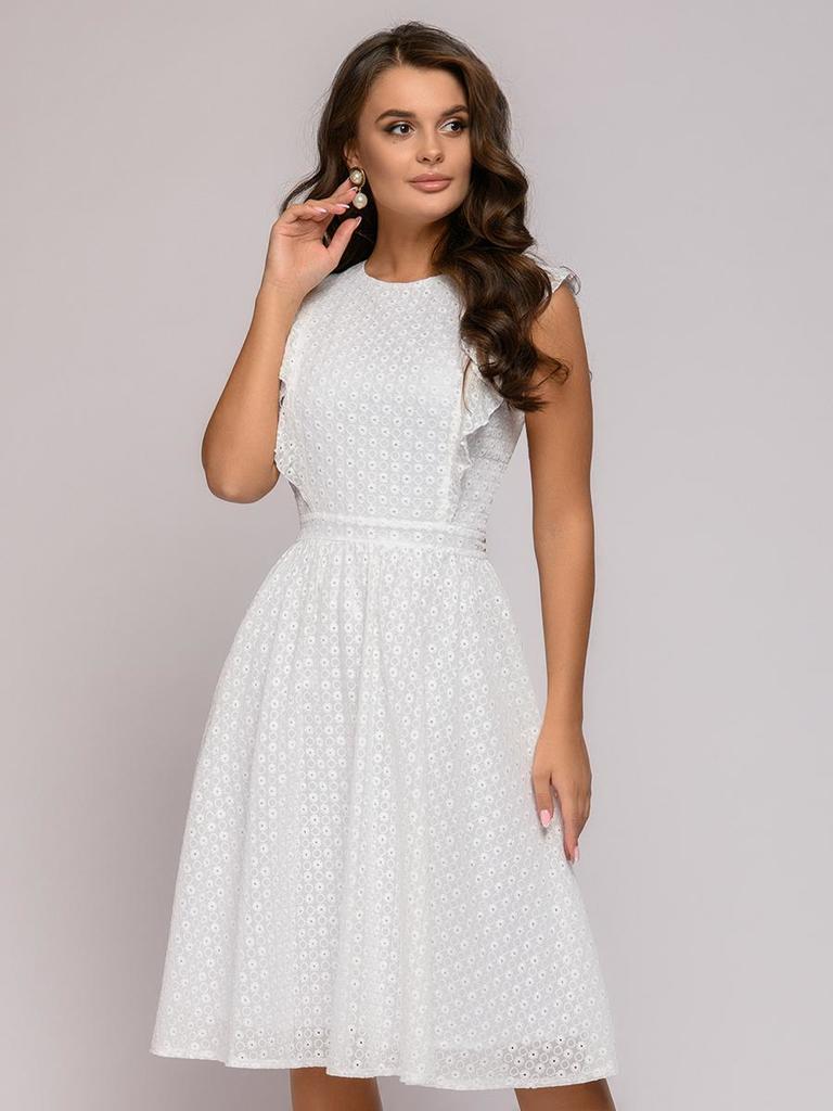 Цвет: белый. Ткань: плательная. Состав: Состав верха: 50% полиэстер, 50% хлопок. Состав низа: 100% хлопок Комплектация: платье. Уход: деликатная машинная стирка при 30 градусах. Сезон: лето allsize: 4... Показать описание0,42,44,46,48. Длина рукава (определение): без рукава. Категория: повседневные платья. Прилегание: полуприлегающее. Горловина: без воротника. Принт: однотонный. Спинка: закрытая. Тип карманов: без карманов Страна производства: Россия. По назначению: повседневное Вид застежки: молния. Юбка: расклешенная Легкое платье белого цвета из смесовой ткани в комфортной длине, прикрывающей колени. Модель оформлена деликатной вышивкой и декорирована оборками на плечах. Эффектный, но сдержанный вариант для любого повода.