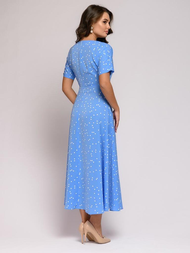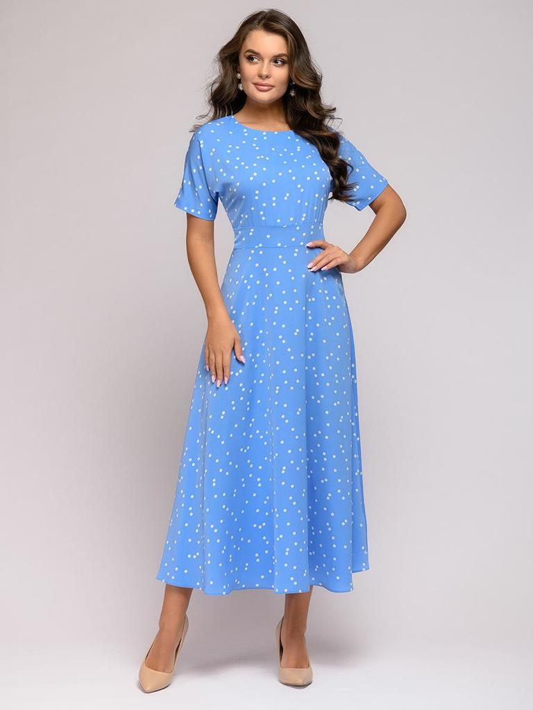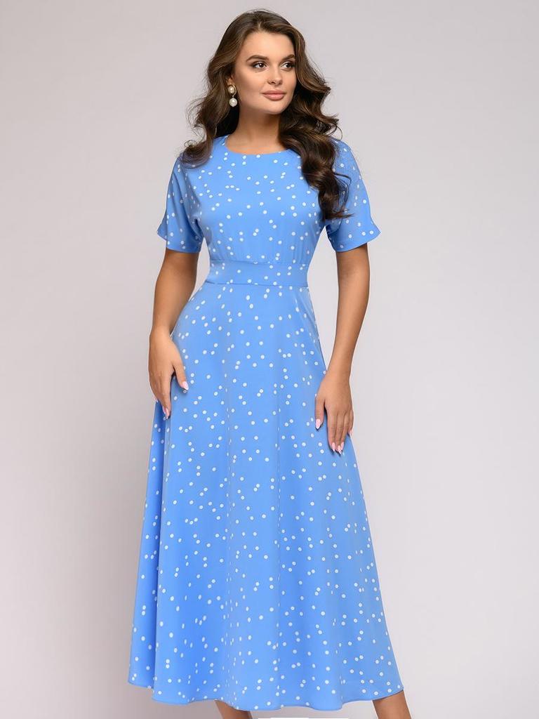 Цвет: голубой (принт горошек). Ткань: плательная. Длина рукава: 28 см. Длина по спинке: 132 см. Состав: 100 % полиэстер Комплектация: платье. Уход: деликатная машинна стирка при 30 градусах. Сезон: ве... Показать описаниесна allsize: 40,42,44,46,48,50,52,54-56. Длина рукава (определение): короткий. Категория: повседневные платья. Прилегание: полуприлегающее. Горловина: без воротника. Принт: мелкий принт. Спинка: закрытая. Тип карманов: без карманов Страна производства: Киргизия. По назначению: повседневное Вид застежки: молния. Юбка: расклешенная Длина по спинке до талии: 42 Удлиненное платье с короткими рукавами и расклешенной юбкой - прекрасный вариант на каждый день.Яркий голубой оттенок, подчеркнутый гороховым принтом, придает свежести образу. Платье одинаково гармонично сочетается как с обувью на плоском ходу, так и с каблуками.
