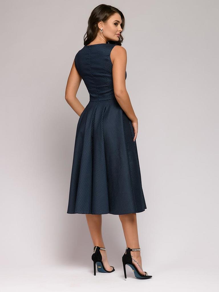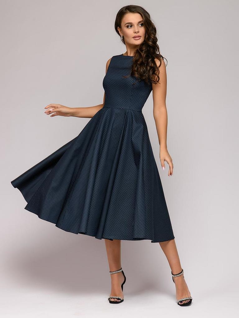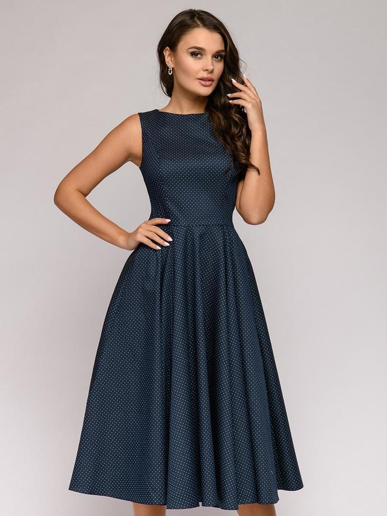Цвет: темно-синий (принт). Ткань: плательная. Длина по спинке: 115 см. Состав: 65% хлопок, 32% полиэстер, 3% эластан Комплектация: платье. Уход: деликатная машинная стирка при 30 градусах. Сезон: весн... Показать описаниеа allsize: 40,42,44,46,48. Длина рукава (определение): без рукава. Категория: повседневные платья. Прилегание: полуприлегающее. Горловина: вырез лодочка. Принт: мелкий принт. Спинка: закрытая. Тип карманов: без карманов Страна производства: Россия. По назначению: повседневное Вид застежки: молния. Юбка: расклешенная Платье темно-синее с мелким принтом без рукавов — модель на все случаи жизни: от романтического свидания до обеда с коллегами. Комфортная длина миди и расклешенная юбка не будут сковывать движения.
