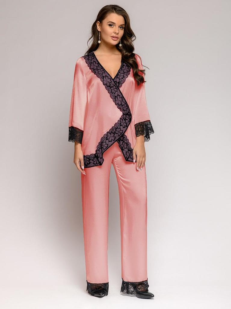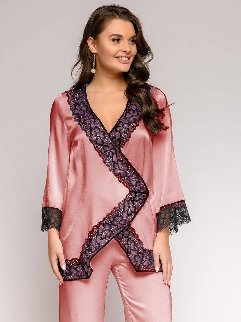 Цвет: пыльная роза. Ткань: плательная - кружево. Длина рукава: 51 см. Длина по спинке: 75 см. Состав: 55% район , 45% вискоза. Уход: деликатная машинная стирка при 30 градусах. Сезон: всесезонный Разр... Показать описаниеешена реализация под заказ: Нет allsize: 40-42,44-46,48. Длина рукава (определение): длинный. Категория: пижамные рубашки. Прилегание: полуприлегающее. Горловина: запах. Принт: однотонный. Спинка: закрытая. Тип карманов: без карманов Страна производства: Россия. По назначению: повседневное Вид застежки: завязки Длина по спинке до талии: 40 Рубашка цвета пыльной розы свободного силуэта на завязках с рукавами 3-4 и контрастной кружевной отделкой. Модель выполнена из вискозы с деликатным атласным блеском. В качестве комплекта нашими дизайнерами предлагаются брюки в тон.