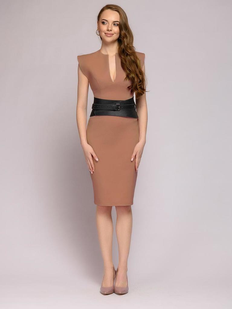 Цвет: лесной орех. Ткань: костюмная. Длина по спинке: 100 см. Состав: 52% хлопок, 44% нейлон, 4% эластан Комплектация: платье; ремень в комплект не входит. Уход: деликатная машинная стирка при 30 град... Показать описаниеусах. Сезон: осень allsize: 40,42,44,46,48. Длина рукава (определение): без рукава. Категория: коктейльные платья. Прилегание: прилегающее. Горловина: глубокий вырез. Принт: однотонный. Спинка: закрытая. Тип карманов: без карманов Страна производства: Россия. По назначению: коктейльное Вид застежки: молния. Юбка: облегающая Платье-футляр в нежном цвете лесной орех должно быть в гардеробе каждой девушки, которая хочет выглядеть более женственно. Платье длины миди изящно облегает силуэт, а вырез на груди делает акцент на зоне декольте.