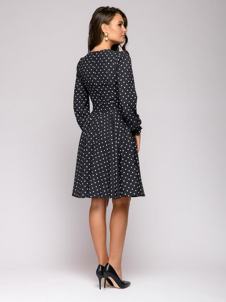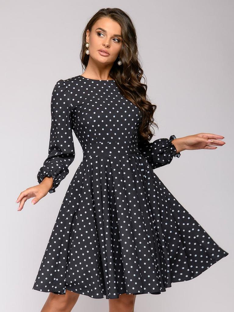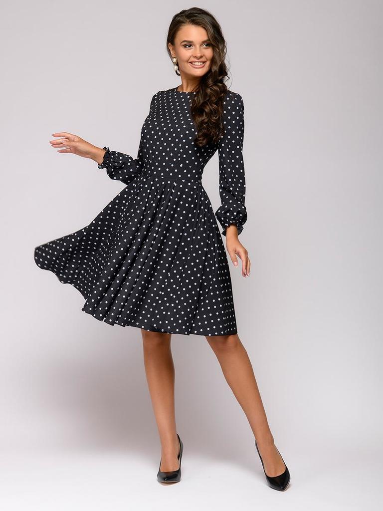 Цвет: черный (принт горошек). Ткань: плательная. Длина рукава: 57 см. Длина по спинке: 92 см. Состав: 94% полиэстер, 6% эластан Комплектация: платье. Уход: деликатная машинная стирка при 30 градусах. ... Показать описаниеСезон: весна allsize: 40,42,44,46,48. Длина рукава (определение): длинный. Категория: повседневные платья. Прилегание: полуприлегающее. Горловина: без воротника. Принт: мелкий принт. Спинка: закрытая. Тип карманов: без карманов Страна производства: Россия. По назначению: повседневное Вид застежки: молния. Юбка: расклешенная Струящаяся ткань и любимый принт горошек - новинка, которую вы так ждали! Присборенные рукава и расклешенная юбка придают платью особую женственность.