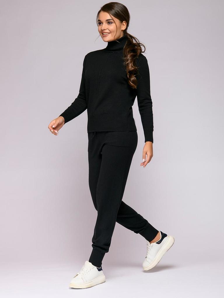 Цвет: черный. Ткань: вязаный трикотаж. Длина по спинке: 93 см. Состав: 100% акрил Комплектация: брюки. Уход: деликатная машинная стирка при 30 градусах. Сезон: зима allsize: 42,44,46. Категория: брюки... Показать описание. Прилегание: полуприлегающее. Принт: однотонный. Спинка: закрытая. Тип карманов: без карманов Страна производства: Россия. По назначению: повседневное Вид застежки: завязки Трикотажные брюки на кулиске - актуальный и уютный вариант на каждый день. Универсальный черный цвет подойдет на каждый день, а джемпер в тон станет прекрасным вариантом для полноценного комплекта.