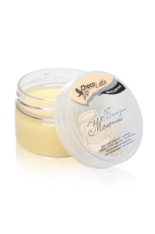 Бальзам-масло для рук "Молочный" с молочными протеинами серии TM ChocoLatte - это нежнейшая композиция специально подобранных натуральных масел, экстрактов, витаминов, эфирных масел и других ценных ин... Показать описаниегредиентов. Предназначен для сухой кожи рук и кутикулы, глубоко питает, смягчает, способствует длительному увлажнению, восстанавливает эластичность. Удивите кожу рук с помощью ароматного Бальзам-масла от ТМ ChocoLattе - это мощный инструмент против трещин и шероховатой кожи. Теперь твои ручки в порядке!Состав: масла: ши, кокоса, зародышей пшеницы, миндальное, льна; воск сои, д-пантенол, масляный экстракт ванили, молочный белок, сквалан, экстракты: алоэ вера, яблока, косточки винограда, эхинацеи, корня лопуха, рисовой мучели, цедры лимона, плюща, листа шелковицы; витамины А и Е. Применение: небольшое количество бльзама нанести на сухую или влажную кожу рук, локтей или кутикулу до полного впитывания. При необходимости излишки снять салфеткой. Хранить вдали от прямых солнечных лучей.