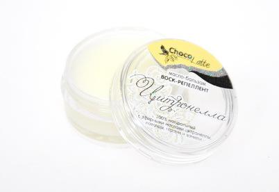 Композиция эфирных масел эффективно отпугивает насекомых (комаров, мошек, слепней, мокрецов), а восковая основа позволяет средству долго оставаться на поверхности кожи, замедляет процесс улетучивания ... Показать описаниесодержащихся эфирных масел, тем самым создавая длительный репеллентный эффект. После длинной зимы мы всегда рады наступлению долгожданного тепла, а вместе с ним, увы, появляются вечные спутники летнего сезона – назойливые, докучающие, а порой и опасные, комары, мошки и другие кровососущие насекомые. Предлагаем Вам новый подход в средствах защиты от укусов насекомых, альтернативу традиционным химическим средствам, которые могут оказаться небезопасными для нас, а особенно для наших детей. Мы создали воски-репелленты, можно сказать «твердые духи» от укусов насекомых на основе натуральных восков с высоким содержанием эфирных масел, аромат которых отпугивает насекомых, обеспечивая длительную, эффективную и безопасную защиту от комаров, мокрецов, слепней и мошек. Это важно:Основным действующим веществом большинства традиционных средств от насекомых является инсектицид ДЭТА (диэтилтолуамид), реже альфа-циперметрин, перметрин и т. п. , которые противопоказаны детям, беременным и кормящим мамам, могут вызвать различные аллергические реакции, раздражение слизистых, повреждение глаз. Данные средства нельзя наносить на загорелую, поврежденную, раздраженную кожу, ограниченно на здоровые участки тела - не чаще 1-2 раз в сутки. Воски-репелленты ТМ ChocoLatte содержат только натуральные ингредиенты, их восковая основа позволяет средству долго оставаться на поверхности кожи, замедляет процесс улетучивания содержащихся эфирных масел, тем самым создавая длительный репеллентный эффект. Количество нанесений в сутки не ограничено. Натуральные средства от насекомых ТМ ChocoLatte компактны, экономичны и удобны в использовании - их легко спрятать в карман, дамскую сумочку, удобно разместить в детской коляске, около кроватки ребенка (в недосягаемости для ручек малыша!), в салоне машины и т. п. Состав: воски (соевый, рисовый, карнаубский), масло кокоса, эфирные масла (гвоздики, базилика и корицы), экстракт ванили. Применение: точечно, не втирая, нанести на открытые участки кожи и на волосы. Использовать по необходимости каждые 1-2 часа. Безопасно для детей с 1 года. Предостережение: средство содержит натуральные эфирные масла, поэтому перед применением проверить на индивидуальную непереносимость.