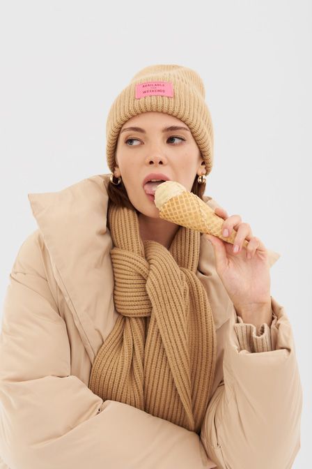 Совет стилиста: Артём, стилист «Для прогулки повторите один из стритстайл-луков Хейли Бибер – дополните шапкой сет с узкими джинсами, худи, клетчатой курткой-рубашкой и ботильонами на устойчивом каблу... Показать описаниеке». Коричневая гамма – один из главных цветовых трендов FW’20/21 по версии Vogue. Шапка-бини в актуальном оттенке от TOPTOP STUDIO выполнена из фактурной ткани в рубчик и дополнена отворотом с контрастной нашивкой. Артикул: 2000410511958 . Детали: – Собственный бренд TOPTOP.RU; – Дизайн: Санкт-Петербург, Россия; – Нейтральный молочный оттенок; – Фактурная ткань в рубчик; – Отворот с контрастной нашивкой; – В составе: 65% акрил, 35% нейлон – легкий, прочный, износостойкий материал, который не деформируется и не теряет цвет при длительной носке; – Производство: КНР. Образ Образ дополнен Длинный шарф в актуальном коричневом оттенке TOPTOP STUDIO, Кардиган с трикотажным топом TOPTOP STUDIO, Широкие джинсы из 100% хлопка с фигурной кокеткой TOPTOP STUDIO