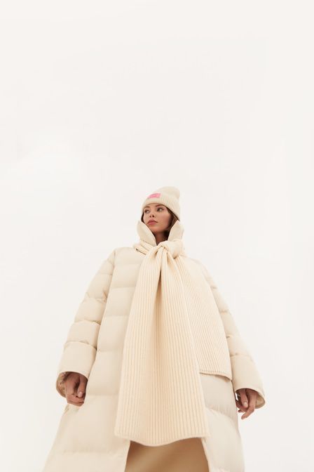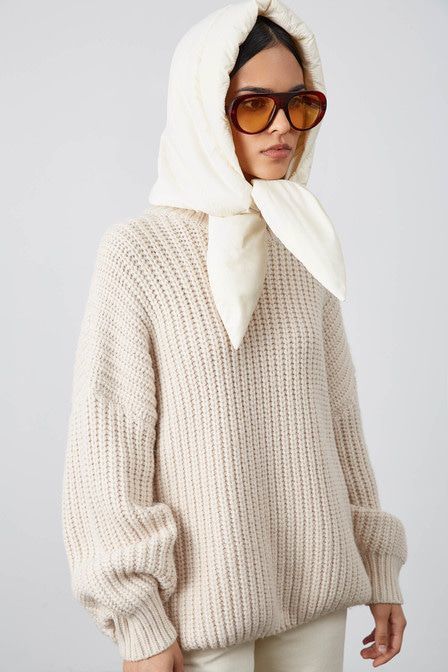 Совет стилиста: Артём, стилист «Для прогулки дополните косынкой сет с брючным трикотажным костюмом коротким контрастным пуховиком с объемным отложным воротником». Объемная стеганая косынка от TOPTOP S... Показать описаниеTUDIO – альтернатива капюшону, которая защитит голову от холода. Аксессуар выполнен в нейтральном молочном оттенке и дополнен наполнителем из синтепуха. Артикул: 2000833201412 . Детали: – Произведено по индивидуальному заказу и под контролем бренда: Россия; – Дизайн: Санкт-Петербург, Россия; – Нейтральный молочный оттенок; – Объемная модель; – Наполнитель из синтепуха; – В составе: 100% терилен – прочный, немнущийся материал, который отлично сохраняет форму и цвет; – Рекомендации по уходу: сухая чистка.