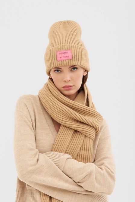 Совет стилиста: Елена, стилист «Для образа на каждый день сочетайте шапку с брючным трикотажным костюмом со свитером, ботинками на платформе и пуховиком длины миди». Шапка-бини из фактурной ткани в ру... Показать описаниебчик выполнена в нейтральном молочном оттенке. Модель дополнена отворотом и контрастной нашивкой с надписью. Артикул: 2000410511910 . Детали: – Собственный бренд TOPTOP.RU; – Дизайн: Санкт-Петербург, Россия; – Нейтральный молочный оттенок; – Фактурная ткань в рубчик; – Отворот с контрастной нашивкой; – В составе: 65% акрил, 35% нейлон – легкий, прочный, износостойкий материал, который не деформируется и не теряет цвет при длительной носке; – Производство: КНР. Образ Образ дополнен Длинный шарф из фактурной ткани в рубчик TOPTOP STUDIO