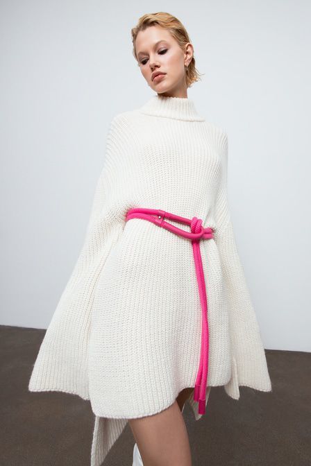 Совет стилиста: Артём, стилист «Для лука в духе стритстайл сочетайте пояс с длинным платьем-свитером свободного кроя, высокими фактурными сапогами и стеганым пальто». Фуксия – один из главных цветовых... Показать описание трендов FW'20/21 по версии Vogue. Акцентный пояс-жгут от TOPTOP выполнен в актуальном оттенке, дополнен петлей и эглетами из экокожи. Артикул: 2000410516984 . Детали: – Собственный бренд TOPTOP.RU; – Производство: Россия; – Дизайн: Санкт-Петербург, Россия; – Фуксия – тренд FW'20/21 по версии Vogue; – Универсальная длина; – Петля и эглеты из экокожи; – В составе: 100% текстиль. Образ Образ дополнен Oversize-свитер из смесовой шерсти с широкими рукавами TOPTOP STUDIO
