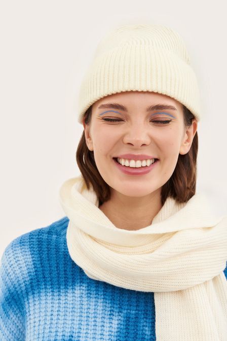 Совет стилиста: Артём, стилист «Если в планах прогулка, сочетайте шапку с oversize-свитером, широкими джинсами, ботинками на платформе и коротким пуховиком на запа?х». Минималистичная шапка-бини от TO... Показать описаниеPTOP выполнена из смесовой шерсти – мягкого, прочного, износостойкого материала, который хорошо сохраняет тепло. Модель нейтрального молочного оттенка легко дополнит луки в разных стилях. Артикул: 2000410516229 . Детали: – Собственный бренд TOPTOP.RU; – Производство: Россия; – Дизайн: Санкт-Петербург, Россия; – Нейтральный молочный оттенок; – Минималистичный дизайн; – В составе: 50% шерсть, 50% ПАН – теплый, прочный, износостойкий материал, который не требует специального ухода и хорошо держит форму. Образ Образ дополнен Длинный шарф из мягкой смесовой шерсти TOPTOP, Свитер с объемными рукавами и принтом тай-дай TOPTOP STUDIO, Oversize-свитшот из переработанного хлопка TOPTOP STUDIO, Брюки-джоггеры из переработанного хлопка TOPTOP STUDIO