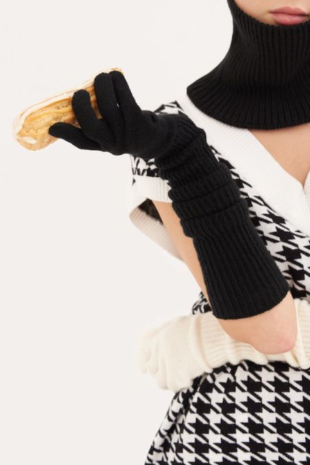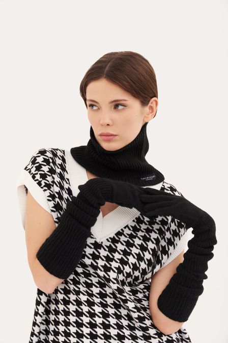 Совет стилиста: Артём, стилист «Для прогулки сочетайте перчатки с облегающей водолазкой, джинсами mom fit, сапогами на каблуке kitten heel и клетчатым пальто». Длинные перчатки – актуальный тренд сезо... Показать описаниена, который поддержали Dries Van Noten и The Row на показах FW’20/21. Аксессуар выполнен из смесовой шерсти в крупный рубчик – мягкого и прочного материала, который хорошо сохраняет тепло. Артикул: 2000410516274 . Детали: – Собственный бренд TOPTOP.RU; – Производство: Россия; – Дизайн: Санкт-Петербург, Россия; – Длинные перчатки – тренд FW’20/21 по версии Buro 24/7; – Универсальный черный цвет; – Фактурная ткань в рубчик; – В составе: 50% шерсть, 50% ПАН – теплый, прочный, износостойкий материал, который не требует специального ухода и хорошо держит форму. Образ Образ дополнен Универсальный шарф-хомут в рубчик TOPTOP STUDIO