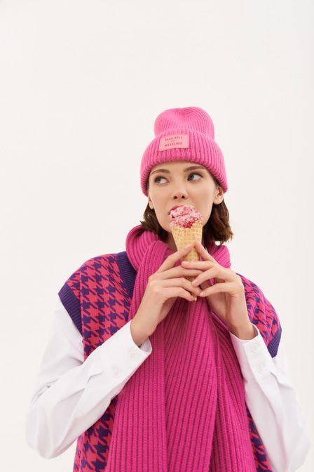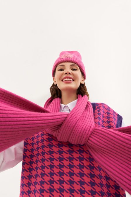 Совет стилиста: Артём, стилист «Для повседневного лука сочетайте шапку с oversize-свитером, джинсами mom fit и коротким пуховиком на запа?х». Шапка-бини от TOPTOP STUDIO выполнена в розовом оттенке фу... Показать описаниексии. Редакторы Vogue включили эту палитру в список главных трендов FW’20/21. Модель из фактурной ткани в рубчик дополнена отворотом и контрастной нашивкой. Артикул: 2000410511927 . Детали: – Собственный бренд TOPTOP.RU; – Дизайн: Санкт-Петербург, Россия; – Фуксия – тренд сезона FW’20/21 по версии Vogue; – Фактурная ткань в рубчик; – Отворот с контрастной нашивкой; – В составе: 65% акрил, 35% нейлон – легкий, прочный, износостойкий материал, который не деформируется и не теряет цвет при длительной носке; – Производство: КНР. Образ Образ дополнен Длинный шарф в трендовом оттенке розовой фуксии TOPTOP STUDIO