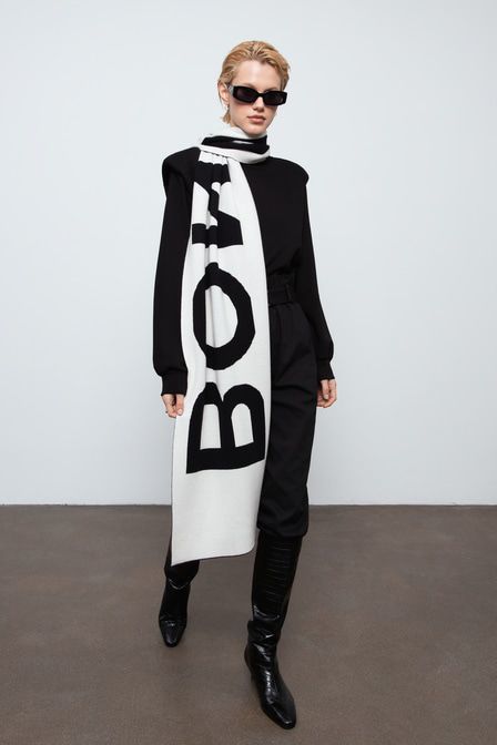 Совет стилиста: Елена, стилист «Для загородного отдыха сочетайте шарф с коротким пуховиком, свитшотом, трикотажными джоггерами и массивными кроссовками». Длинный широкий шарф от TOPTOP STUDIO выполнен... Показать описание в классической черно-белой гамме и декорирован принтом в виде надписи Bonjour. Аксессуар легко дополнит любой повседневный лук. Артикул: 2000410521254 . Детали: – Собственный бренд TOPTOP.RU; – Дизайн: Санкт-Петербург, Россия; – Двухцветный аксессуар: классическая черно-белая гамма; – Контрастный принт-надпись Bonjour; – В составе: 65% акрил, 35% нейлон – легкий, прочный, износостойкий материал, который не деформируется и не теряет цвет при длительной носке; – Производство: КНР. Образ Образ дополнен Брюки с высокой посадкой и фигурной кокеткой TOPTOP, Универсальные сапоги с трендовой фактурой «под крокодила» Lera Nena Unreal, Хлопковый свитшот свободного кроя с акцентными плечами TOPTOP STUDIO