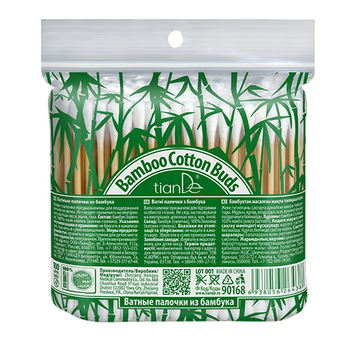 Ватные палочки – предмет, который есть, пожалуй, в любом доме. Чем же палочки от TianDe отличаются от всего того, что предлагает рынок? Мы создали продукт, который отвечает всем стандартам экокачества... Показать описание! Наши ватные палочки на 100% биоразлагаемы, ведь они состоят только из природных материалов! Никакого пластика – лишь хлопок и бамбук. Если здоровая экология для вас не пустой звук, вы будете придерживаться правила «здоровых» продуктов даже в мелочах! Бамбук на 100% разлагается микроорганизмами и может быть сожжен без загрязнения окружающей среды. Кроме того, это возобновляемый ресурс. Бамбук растет очень быстро, нуждается в небольшом количестве воды, и ему не требуются никакие удобрения. Выбирая бамбук, мы выступаем против чрезмерного использования древесины и, следовательно, против вырубки леса. Ватные палочки из бамбука – необходимый аксессуар и в косметичке, и в аптечке, и на полочке в ванной! - Для гигиенических процедур. - Для коррекции макияжа. - Для нанесения лекарственных средств.