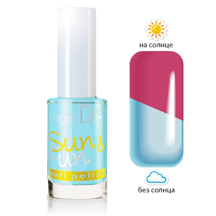 Любишь меняться? Один и тот же цвет лака каждый день кажется тебе скучным? Значит, модные лаки Sun & Fun созданы специально для тебя! Это два трендовых матовых оттенка в одном флакончике! Только предс... Показать описаниетавь: один оттенок в помещении, но совершенно другой – под ярким солнцем! Что это – магия, трюк или обман зрения? А вот и нет! Это современные технологии на службе у красоты! В составе лака использованы специальные компоненты, которые невидимы для наших глаз, пока на них не попали лучи ультрафиолета. Стоит солнцу своими лучами дотронуться до поверхности, на которую нанесен разработанный специалистами состав, она заиграет новым сочным оттенком! Помимо потрясающего внешнего эффекта этот лак порадует тебя отличной стойкостью и легким распределением по ногтевой пластине. Меняй цвет лака в мгновение ока, удивляй подруг! Применение: С помощью кисточки накрасить лаком ногти, полностью высушить. Если нужен более насыщенный цвет, нанести второй слой.