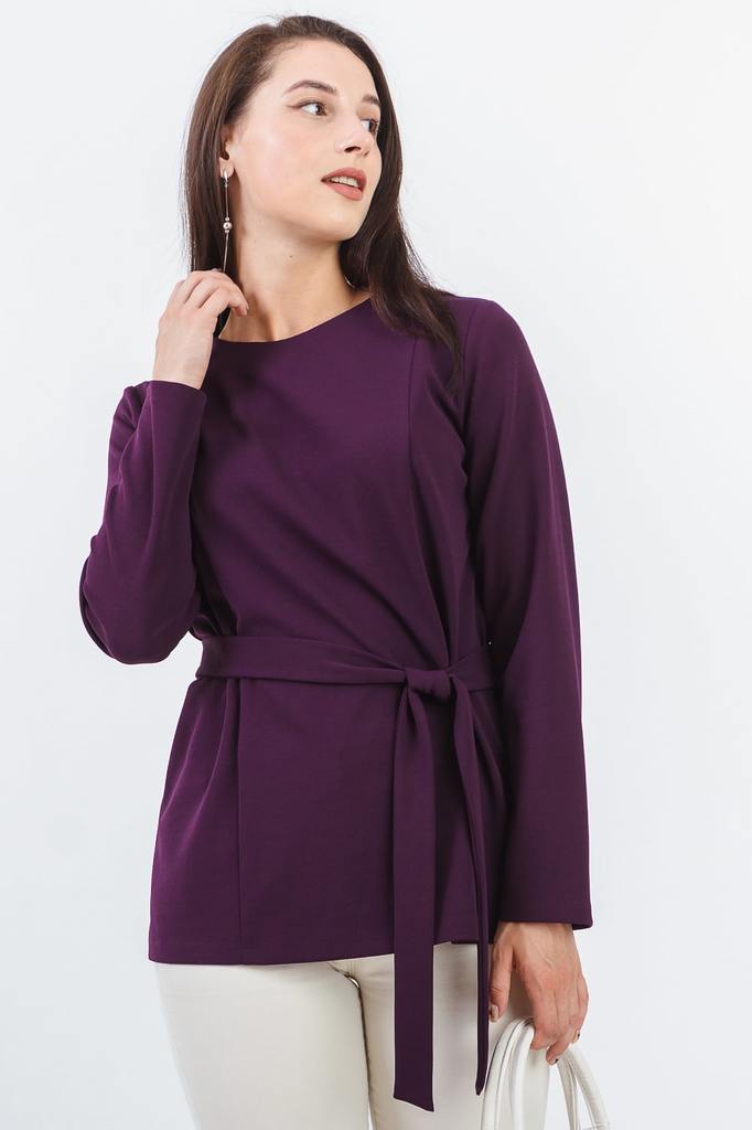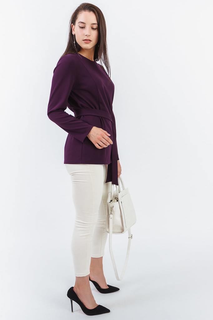Элегантный джемпер позволит Вам создать свой индивидуальный образ. Джемпер полуприлегающего силуэта. Горловина обработана обтачкой. На переде рельефы от плеча,спинка со средним швом. В среднем шве спи... Показать описаниенки - застежка на пуговицу. Рукава втачные, длинные. Во избежании потери, пояс прикреплен к изделию. Перед началом ношения изделия, пояс необходимо отпороть. В изделии использованы цвета: фиолетовый. Длина рукава - 54 ± 1 см Длина изделия - 66 ± 2 см При создании образа, который Вы видите на фотографии, также были использованы брюки арт.B0420 и стильная сумка арт.SMK4919. Для просмотра модели введите артикул в строке поиска. Брюки арт.B0420 идеально подойдут для создания элегантного костюма. Параметры девушки-фотомодели: Рост - 169 см Размер - 46 Обхват груди - 92 ± 1 см Обхват талии - 70 ± 1 см Обхват бёдер - 102 ± 1 см Длина переда до талии – 42,5 ± 1 см Длина спины до талии - 40 ± 1 см Длина руки - 59 ± 1 см