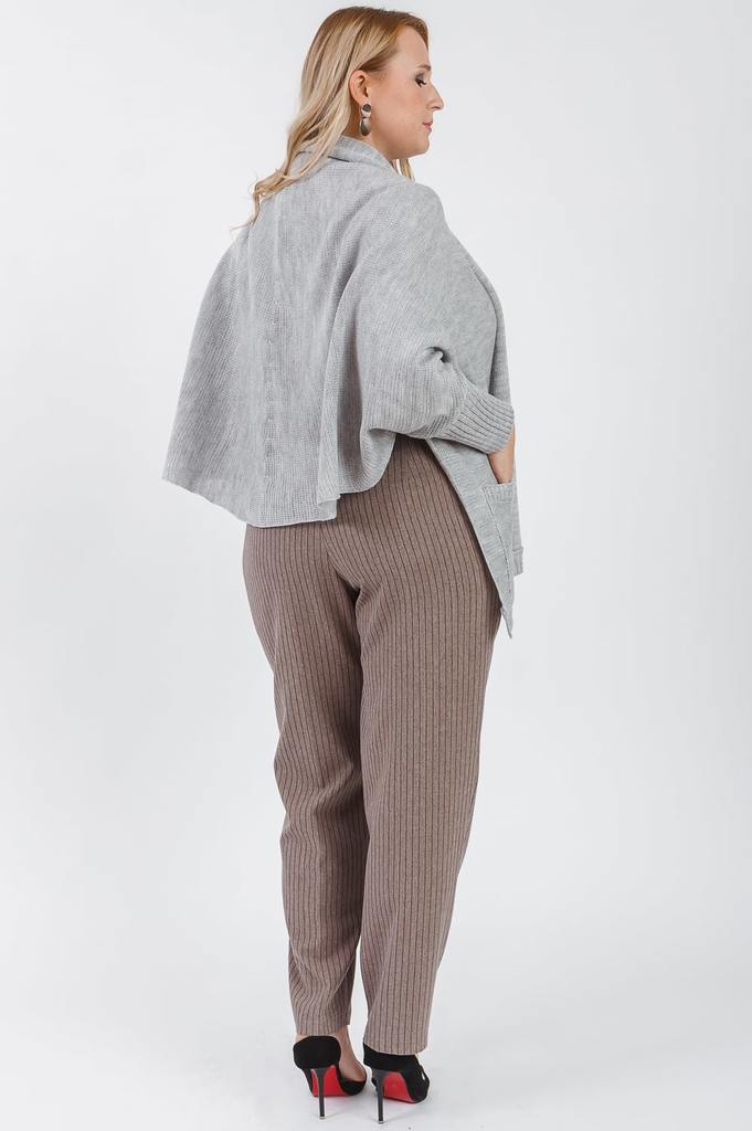 Кардиган с длинными рукавами. Модель выполнена из пряжи. Вязаные изделия - это красота, тепло и комфорт. В вязаных вещах очень легко оставаться женственной и в то же время не замёрзнуть. Кардиган-понч... Показать описаниео свободного кроя. На передней части изделия накладные карманы. Воротник "шалевый". Рукав цельнокроенный, длинный. В изделии использованы цвета: серый. Длина рукава (от конечной плечевой точки) - 60 ± 1 см Длина изделия - 74 ± 2 см При создании образа, который Вы видите на фотографии, также были использованы брюки арт.B0520 и сумка арт.SMK0318. Для просмотра модели введите артикул в строке поиска. Параметры девушки-фотомодели: Рост - 170 см Размер - 52 Обхват груди - 102 ± 1 см Обхват талии - 82 ± 1 см Обхват бёдер - 118 ± 1 см
