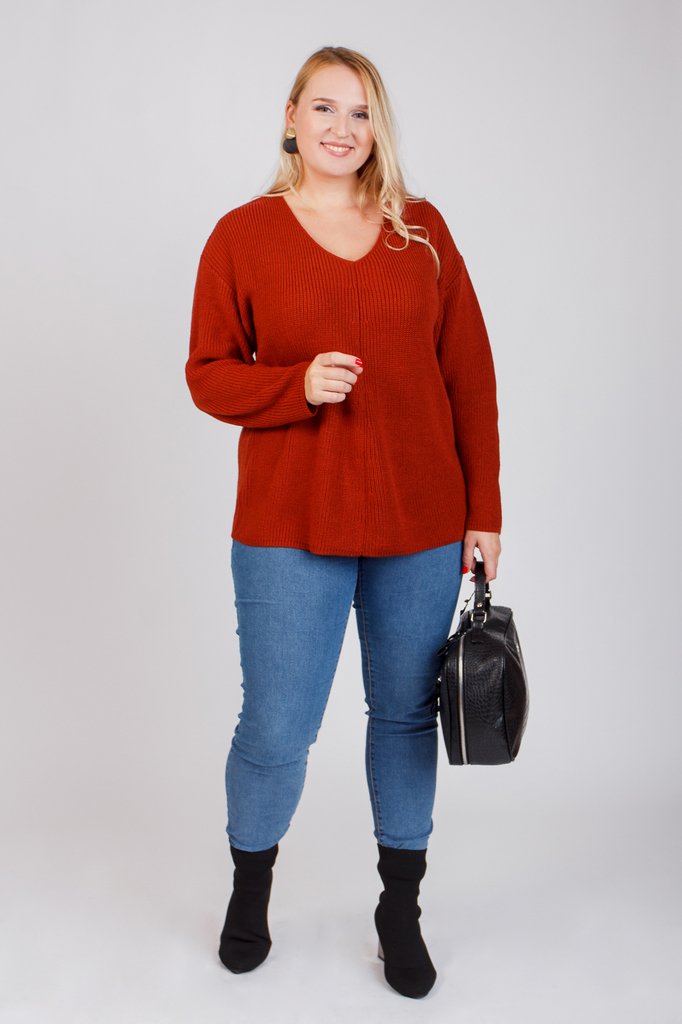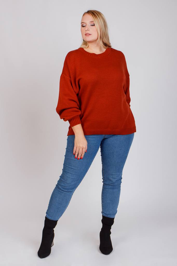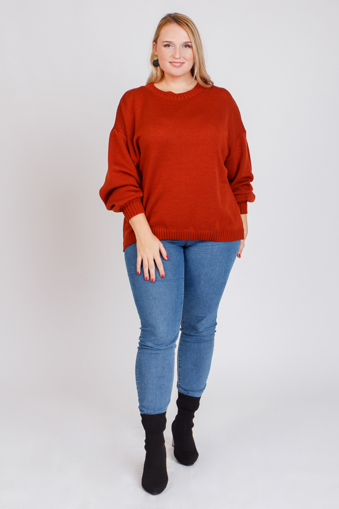 Стильный джемпер оверсайз. Модель выполнена из пряжи. Вязаная одежда всегда актуальна, отличается комфортом и практичностью. Изделия из пряжи займут достойное место в гардеробе и станут прекрасной осн... Показать описаниеовой для стильных образов. Джемпер прямого силуэта, оверсайз. На передней части изделия средний шов. Горловина переда вывязана, горловина спинки обработан бейкой. Рукав рубашечный, длинный, со спущенной линией плеча. В изделии использованы цвета: коричневый. Длина рукава (от конечной плечевой точки) - 60 ± 1 см Длина изделия - 63 ± 2 см Параметры девушки-фотомодели: Рост - 170 см Размер – 52-54 Обхват груди - 106 ± 1 см Обхват талии - 86 ± 1 см Обхват бёдер - 119 ± 1 см Длина переда до талии – 52 ± 1 см