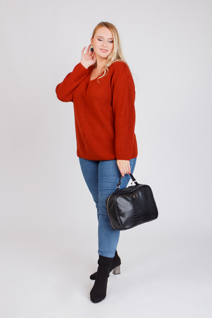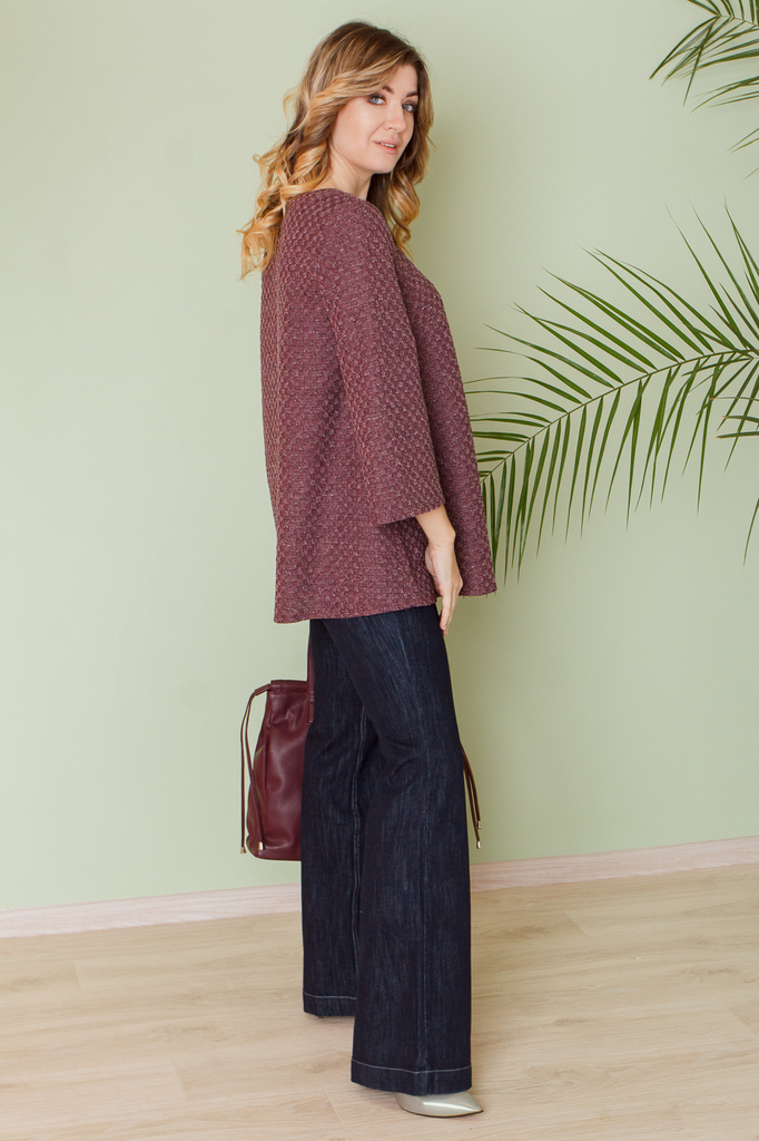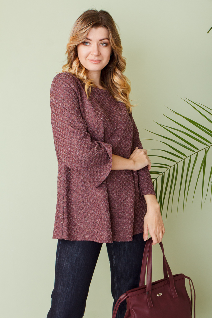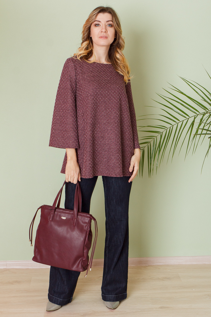 Каждая современная женщина хочет выглядеть красиво и при этом не ощущать никакого дискомфорта. Этот универсальный джемпер - туника добавит удобства любому образу. Джемпер силуэта "трапеция". На спинке... Показать описание средний шов. Горловина обработана двойной обтачкой. Рукав втачной, 7/8, расширенный к низу. Цвет: бордовый. Длина рукава (от конечной плечевой точки) - 50 ± 1 см Длина изделия - 73 ± 2 см При создании образа, который Вы видите на фотографии, также были использованы сумка арт. SMK0318. Для просмотра модели введите артикул в строке поиска. Параметры девушки-фотомодели: Рост - 167 см Размер - 44-46 Обхват груди - 89 см ± 1 см Обхват талии - 69 см ± 1 см Обхват бёдер - 99 см ± 1 см Длина переда до талии - 45 см ± 1 см Длина спины до талии - 40 см ± 1 см Длина руки - 60 см ± 1 см
