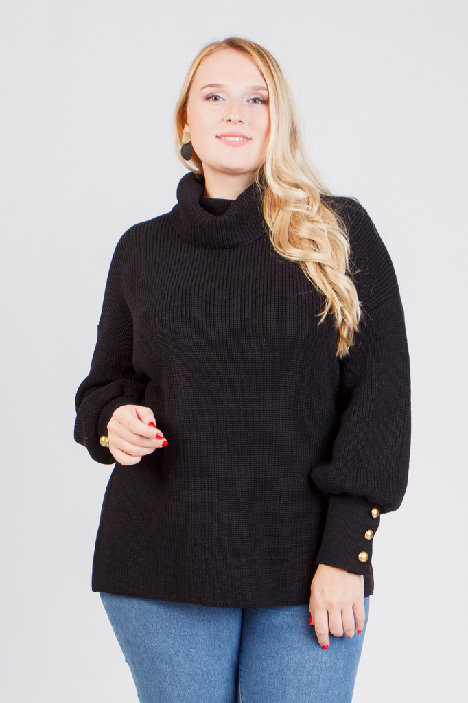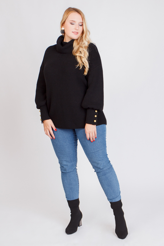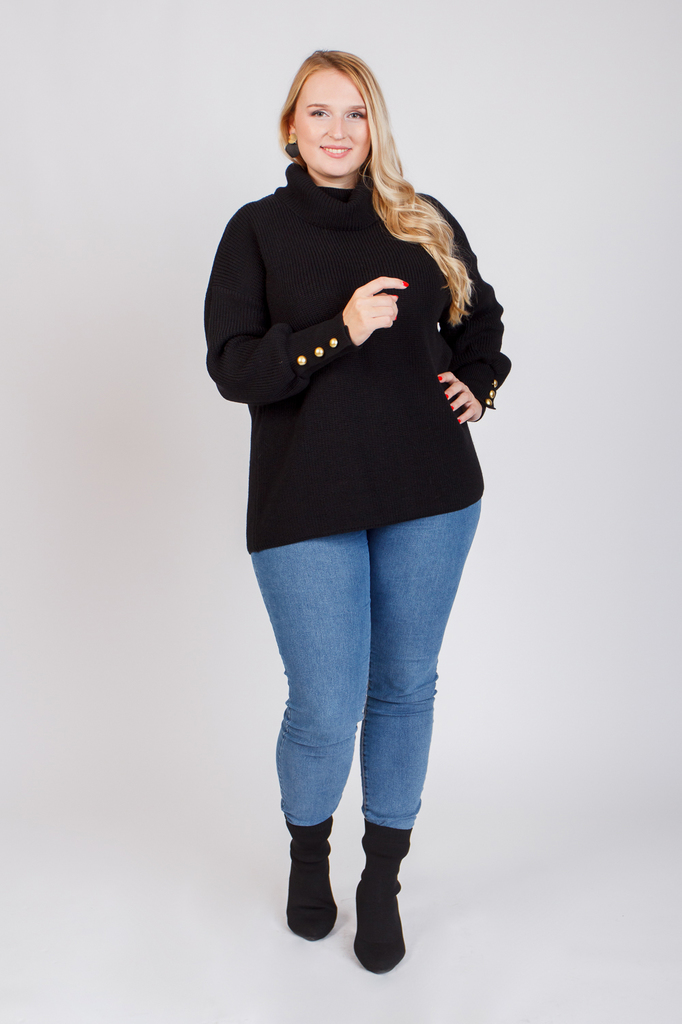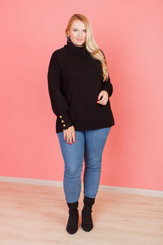 Удлиненный свитер из из мягкой пряжи выполнен в универсальном черном цвете. Прямой крой модели подходит для различного типа фигур. Свитер прямого свободного силуэта со спущенной линей плеча. Воротник ... Показать описание"стойка" с широким отворотом. Рукава длинные с высокой манжетой на пуговицах. В изделии использованы цвета: черный. Длина рукава (от конечной плечевой точки) - 60 ± 1 см Длина изделия: 46 размер - 65 ± 2 см 48 размер - 65 ± 2 см 50 размер - 65 ± 2 см 52 размер - 65 ± 2 см 54 размер - 67 ± 2 см 56 размер - 67 ± 2 см 58 размер - 67 ± 2 см Параметры девушки-фотомодели: Рост - 170 см Размер - 52 Обхват груди - 102 ± 1 см Обхват талии - 82 ± 1 см Обхват бёдер - 118 ± 1 см