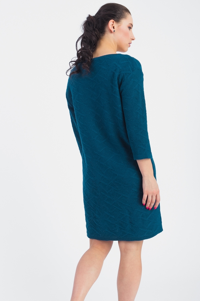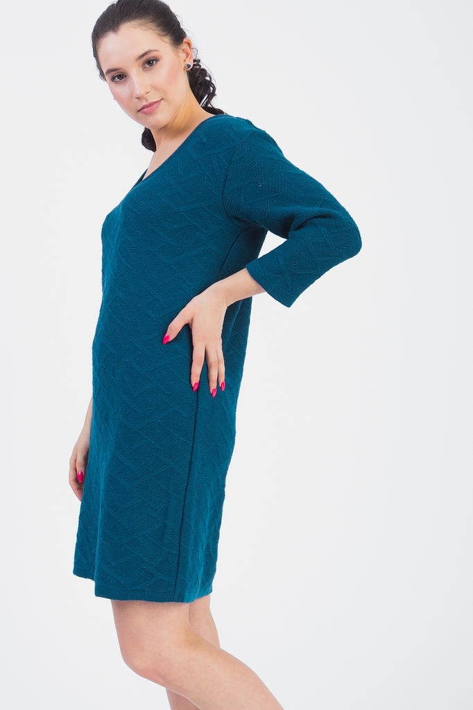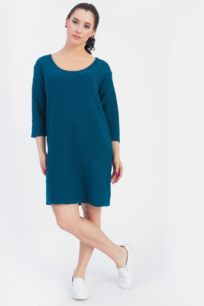Повседневное женское платье лаконичного дизайна. Модель выполнена из пряжи. Вязаные изделия - это красота, тепло и комфорт. В вязаных вещах очень легко оставаться женственной и в то же время не замёрз... Показать описаниенуть. Платье прямого силуэта. Горловина круглая обработана бейкой. Рукав рубашечный, 3/4, со спущенной линией плеча. В изделии использованы цвета: морская волна Длина рукава от конечной плечевой точки - 42 ± 1 см Длина изделия: 46 размер - 89 ± 2 см 48 размер - 89 ± 2 см 50 размер - 89 ± 2 см 52 размер - 89 ± 2 см 54 размер - 92 ± 2 см 56 размер - 92 ± 2 см 58 размер - 92 ± 2 см Параметры девушки-фотомодели: Рост - 169 см Размер - 46 Обхват груди - 92 см ± 1 см Обхват талии - 70 см ± 1 см Обхват бёдер - 102 см ± 1 см