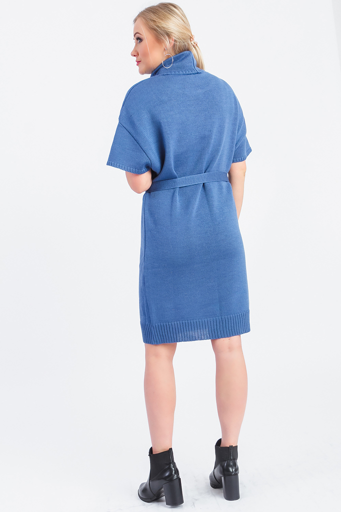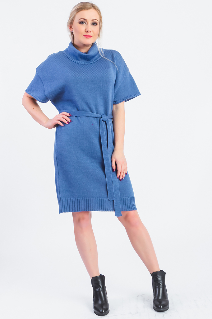 Платье однотонной расцветки с поясом. Модель выполнена из пряжи. Вязаные изделия - это красота, тепло и комфорт. В вязаных вещах очень легко оставаться женственной и в то же время не замёрзнуть. Плать... Показать описаниее прямого силуэта со съемным поясом. Воротник "хомут". Рукав рубашечный, короткий, со спущенной линией плеча. В изделии использованы цвета: синий. Длина рукава (от конечной плечевой точки) - 26 ± 1 см Длина изделия: 46 размер - 95 ± 2 см 48 размер - 95 ± 2 см 50 размер - 95 ± 2 см 52 размер - 95 ± 2 см 54 размер - 98 ± 2 см 56 размер - 98 ± 2 см 58 размер - 98 ± 2 см Параметры девушки-фотомодели: Рост - 168 см Размер - 48 Обхват груди - 97 ± 1 см Обхват талии - 77 ± 1 см Обхват бёдер - 104 ± 1 см Длина переда до талии - 48 ± 1 см Длина спины до талии - 40 ± 1 см Длина руки - 60 ± 1
