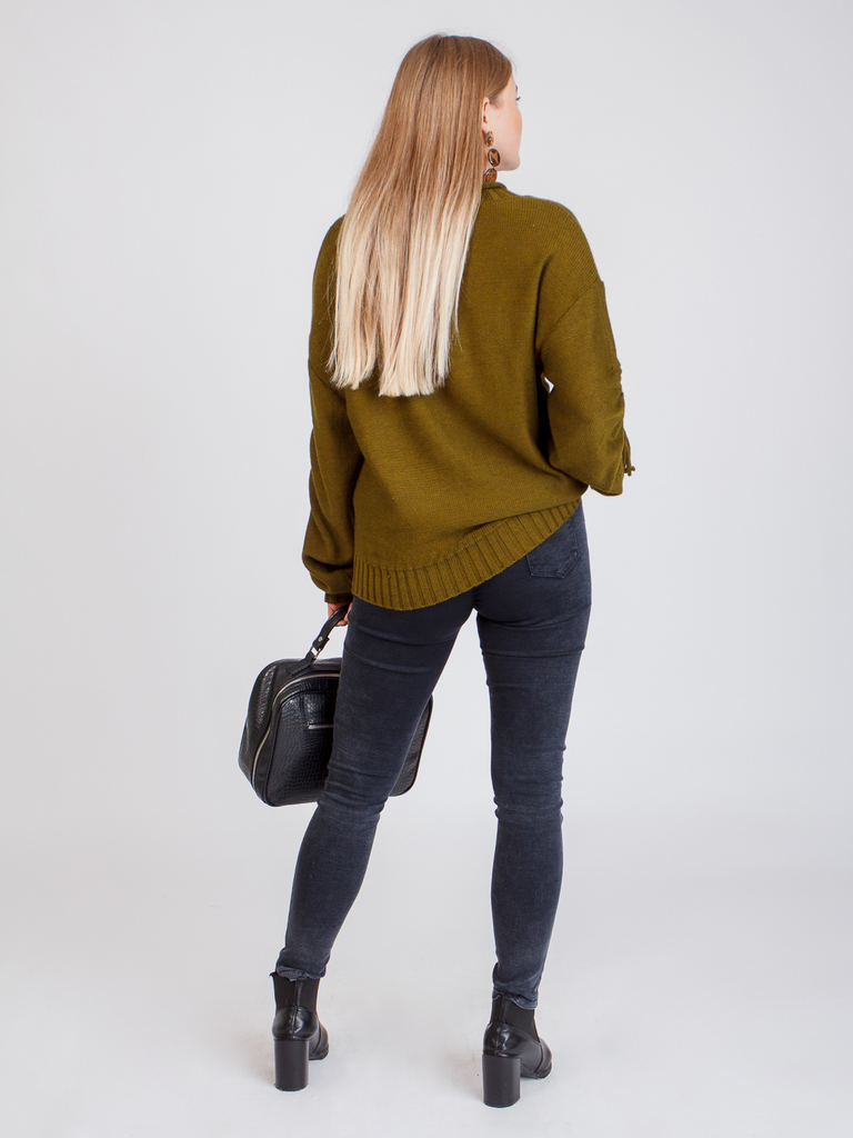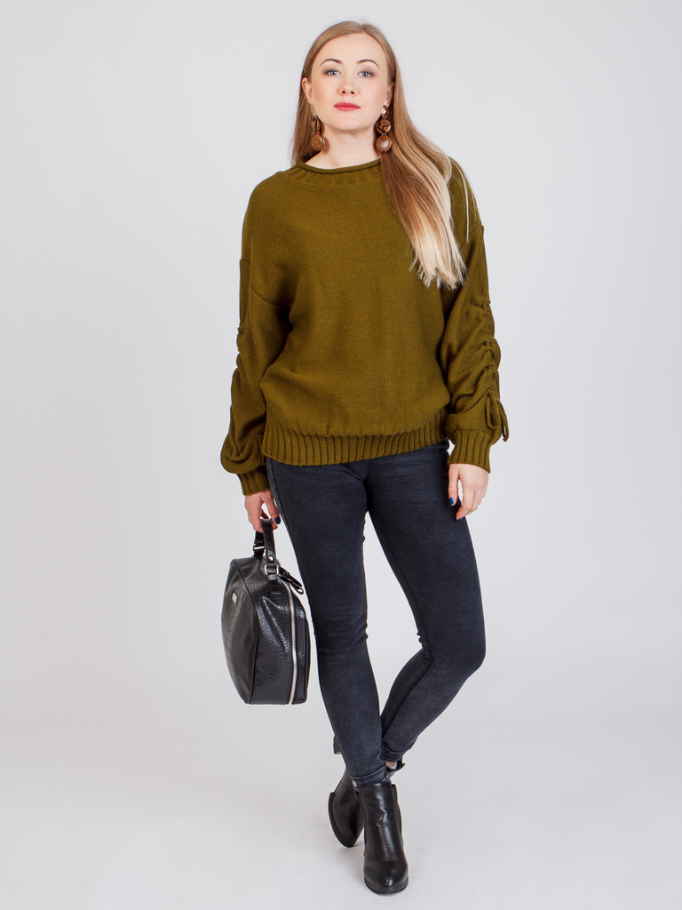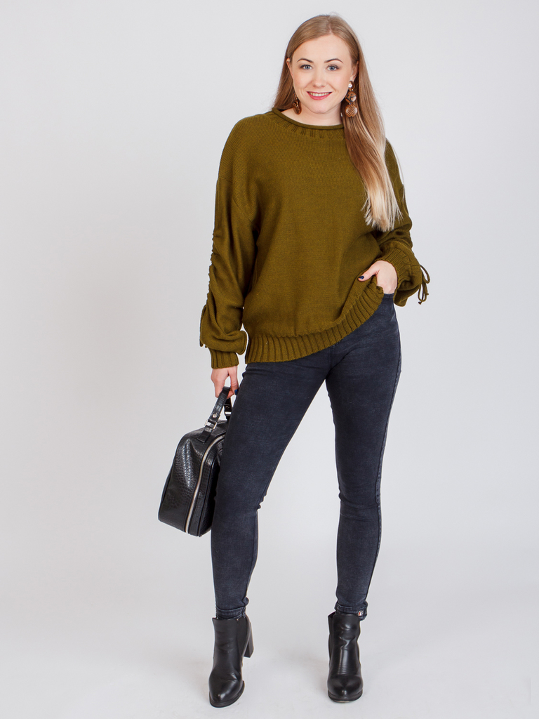 Повседневный вязаный джемпер специально для Вас! Модель выполнена из пряжи. Вязаная одежда всегда актуальна, отличается комфортом и практичностью. Изделия из пряжи займут достойное место в Вашем гарде... Показать описаниеробе и станут прекрасной основой для стильных образов. Джемпер прямого силуэта. Горловина округлая, обработана бейкой-резинкой с руликом. Рукава свободные, по низу с притачной резинкой. Длина рукава регулируется шнуровкой. По низу джемпера - резинка. В изделии использованы цвета: зеленый. Длина рукава регулируемая - от длинного до 3/4. Длина изделия: 46 размер - 64 ± 2 см 48 размер - 64 ± 2 см 50 размер - 64 ± 2 см 52 размер - 64 ± 2 см 54 размер - 66 ± 2 см 56 размер - 66 ± 2 см 58 размер - 66 ± 2 см При создании образа, который Вы видите на фотографии, также была использована сумка арт.SMK10919. Для просмотра модели введите артикул в строке поиска. Параметры девушки-фотомодели: Рост - 168 см Размер - 48 Обхват груди - 97 ± 1 см Обхват талии - 77 ± 1 см Обхват бёдер - 104 ± 1 см Длина переда до талии - 48 ± 1 см Длина спины до талии - 40 ± 1 см Длина руки - 60 ± 1 см