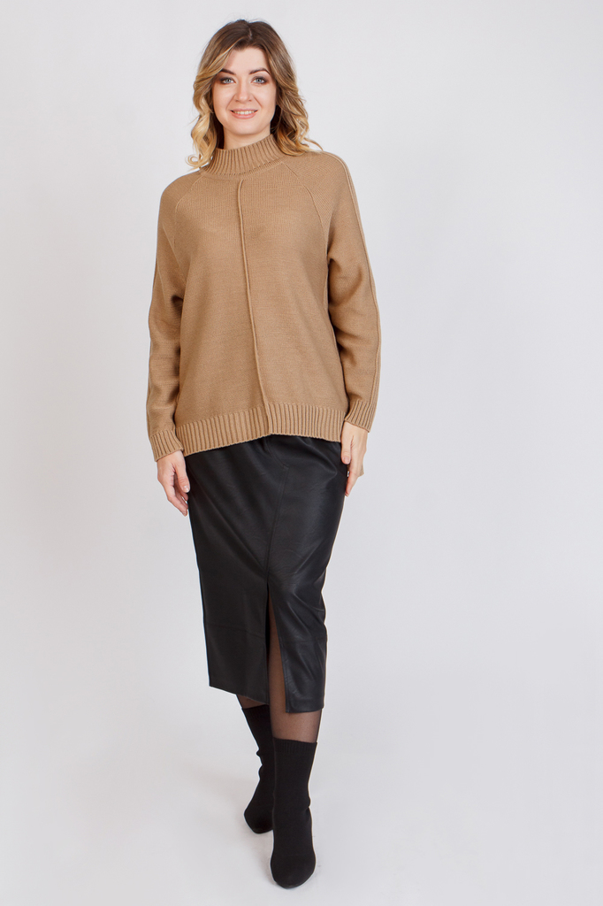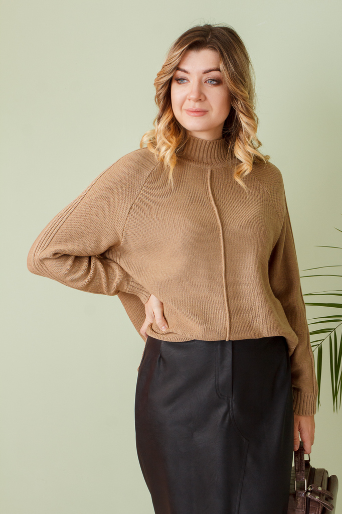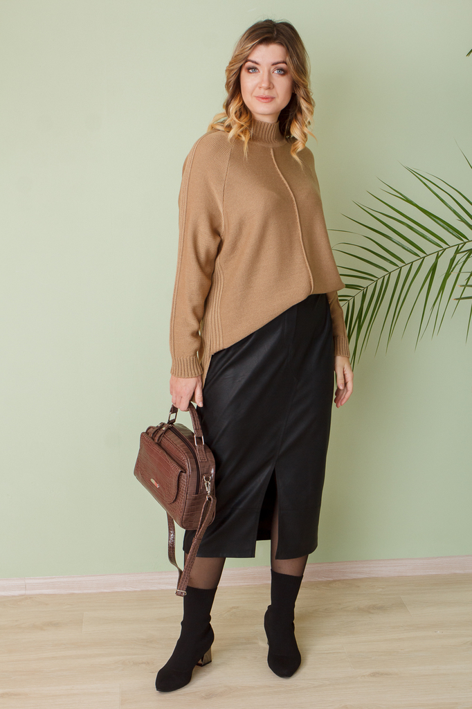 Джемпер с фигурным низом. Модель выполнена из пряжи. Вязаные изделия - это красота, тепло и комфорт. В вязаных вещах очень легко оставаться женственной и в то же время не замёрзнуть. Джемпер прямого с... Показать описаниеилуэта, "оверсайз", с разным уровнем низа и разрезами в боковых швах. Воротник "стойка". Рукав реглан, длинный. В изделии использованы цвета: бежевый Длина рукава (от конечной плечевой точки) - 60 ± 1 см Длина изделия - 67 ± 2 см При создании образа, который Вы видите на фотографии, также были использованы юбка арт. U0419 и сумка арт. SMK8219. Для просмотра модели введите артикул в строке поиска. Параметры девушки-фотомодели: Рост - 167 см Размер - 44-46 Обхват груди - 89 см ± 1 см Обхват талии - 69 см ± 1 см Обхват бёдер - 99 см ± 1 см Длина переда до талии - 45 см ± 1 см Длина спины до талии - 40 см ± 1 см Длина руки - 60 см ± 1 см