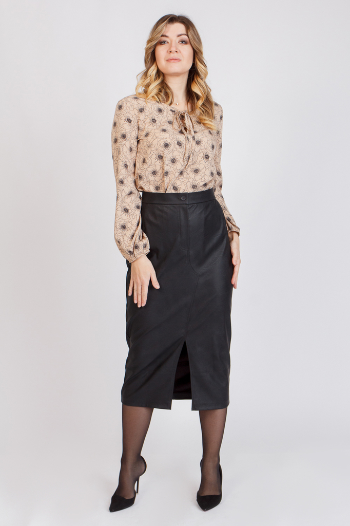 Такая прелестная блузка поможет Вам создать изящный образ для будней и выходных дней. Блузка силуэта "трапеция". На спинке средний шов. Горловина окантована с щелью на передней части изделия и декорат... Показать описаниеивной шнуровкой. Рукав втачной, длинный, с резинкой по низу. В изделии использованы цвета: бежевый, черный Длина рукава - 58 ± 1 см Длина изделия: 46 размер - 61 ± 2 см 48 размер - 61 ± 2 см 50 размер - 61 ± 2 см 52 размер - 61 ± 2 см 54 размер - 63 ± 2 см 56 размер - 63 ± 2 см 58 размер - 63 ± 2 см При создании образа, который Вы видите на фотографии, также были использованы юбка арт. U0419. Для просмотра модели введите артикул в строке поиска. Параметры девушки-фотомодели: Рост - 167 см Размер - 44-46 Обхват груди - 89 см ± 1 см Обхват талии - 69 см ± 1 см Обхват бёдер - 99 см ± 1 см Длина переда до талии - 45 см ± 1 см Длина спины до талии - 40 см ± 1 см Длина руки - 60 см ± 1 см
