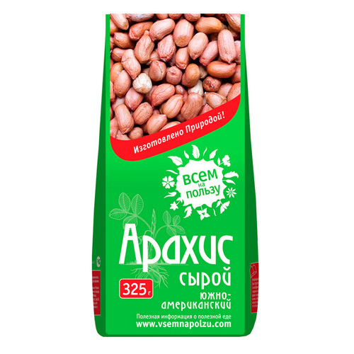 Производитель: Всем на пользуРоссия; Страна производства: Россия; Пищевая ценность (на 100 г): Белки - 26,3 г, Жиры - 45,2 г, Углеводы - 9,9 г.; Энергетическая ценность (на 100 г): 551 кКал Сегодня ар... Показать описаниеахис – признанный продукт питания во всем мире. Его едят сырым, жареным, солёным, сладким. Но, как и другие бобы, лучше всего он усваивается организмом человека именно в сыром пророщенном виде. Достаточно замочить бобы арахиса всего на 2-3 часа, чтобы их вкус кардинально поменялся! Пророщенный арахис становится сладким и очень сочным. Однако проращивать его дольше пяти часов после замачивания не рекомендуется – бобы начинают ощутимо горчить. Полезные свойства арахиса огромны, так же, как и его калорийность (в 100 г бобов содержится 550 Ккал). В составе арахиса в большом количестве содержатся антиоксиданты, представленные полифенолами, которые помогают организму бороться со свободными радикалами, а также большое количество витамина PP (в 100г – 90% суточной потребности!). Несколько грамм арахиса полезно употреблять при сильном истощении, неврозах, депрессии и усталости. Боб также способствует улучшению внимания, памяти и слуха. Однако он не рекомендован к употреблению людям, имеющим проблемы с сосудами, так как имеет свойство сгущать кровь. ОЗНАКОМИТЬСЯ С СОСТАВОМ, СПОСОБОМ ПРИМЕНЕНИЯ И ОТЗЫВАМИ МОЖНО ПО ЭТОЙ ССЫЛКЕ
