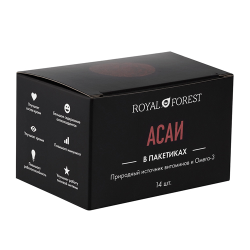 Производитель: Royal ForestРоссия; Страна производства: Россия; Пищевая ценность (на 100 г): Белки - 9 г, Жиры - 54 г, Углеводы - 34,5 г.; Энергетическая ценность (на 100 г): 530 кКал / 2220 кДж Порош... Показать описаниеок асаи содержат калий, медь, магний, множество витаминов, клетчатку, Омега-3, фитостерины, здоровые ненасыщенные жиры. Черные плоды асаи содержат больше антиоксидантов, чем грейпфруты и даже черника! ОЗНАКОМИТЬСЯ С СОСТАВОМ, СПОСОБОМ ПРИМЕНЕНИЯ И ОТЗЫВАМИ МОЖНО ПО ЭТОЙ ССЫЛКЕ