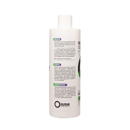 Производитель: OnmeРоссия; Страна производства: Россия; Эффект: Увлажнение / Питание Средство для ежедневного применения на основе коко-глюкозида - мягкого ПАВ, который сохраняет гидролипидный барьер ... Показать описаниекожи и образует густую, стабильную пену. Комплекс масел абрикоса, рапса, миндаля и авокадо способствует увлажнению, питанию и восстановлению защитной функцию кожи. Экстракты асаи и листьев березы оказывают оздоравливающее воздействие, обеспечивают защиту кожи от потери влаги, стимулируют процесс регенерации. Благодаря эфирным маслам кедра и нероли, обладает антисептическими и противовоспалительными свойствами, снижает активность сальных желез, усиливает обмен веществ и кровообращение. Невероятно нежная текстура пенки бережно очищает и оставляет после использования чувство комфорта и мягкости. Все средства Onme имеют сертификат Cruelty Free and Vegan PETA. ОЗНАКОМИТЬСЯ СО СПОСОБОМ ПРИМЕНЕНИЯ И ОТЗЫВАМИ МОЖНО ПО ЭТОЙ ССЫЛКЕ