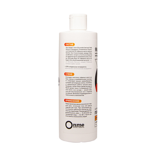 Производитель: OnmeРоссия; Страна производства: Россия Создан на основе коко-глюкозида — мягкого очищающего компонента, который сохраняет гидролипидный барьер кожи. Воздушная пена приятно обволакивает... Показать описание, легко и быстро смывается. Благодаря эфирным маслам апельсина и корицы, стимулирует синтез коллагена, повышает эластичность и упругость кожи, усиливает обмен веществ и кровообращение. Морская соль помогает нормализовать работу сальных желез. Теплый пряный аромат расслабляет и восстанавливает эмоциональное равновесие. Уровень pH 5,5. ОЗНАКОМИТЬСЯ СО СПОСОБОМ ПРИМЕНЕНИЯ И ОТЗЫВАМИ МОЖНО ПО ЭТОЙ ССЫЛКЕ