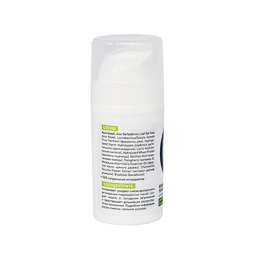 Производитель: OnmeРоссия; Страна производства: Россия Восстанавливает кожу после пребывания на солнце, снимает раздражение, успокаивает и устраняет покраснения. Гель алоэ вера восстанавливает баланс ... Показать описаниевлаги, снимает болевые ощущения, приятно охлаждает и ускоряет заживление при солнечных ожогах. Благодаря гидролату ромашки, экстрактам облепихи, крапивы, чабреца и малины гель нормализует защитную функцию кожи, укрепляет сосуды и стимулирует обменные процессы. Легко распределяется и впитывается. Обладает тонким ароматом с нотками мяты. Возможна индивидуальная непереносимость компонентов, перед использованием нанесите средство на внутренний локтевой сгиб. Уровень pH 5,0. ОЗНАКОМИТЬСЯ СО СПОСОБОМ ПРИМЕНЕНИЯ И ОТЗЫВАМИ МОЖНО ПО ЭТОЙ ССЫЛКЕ