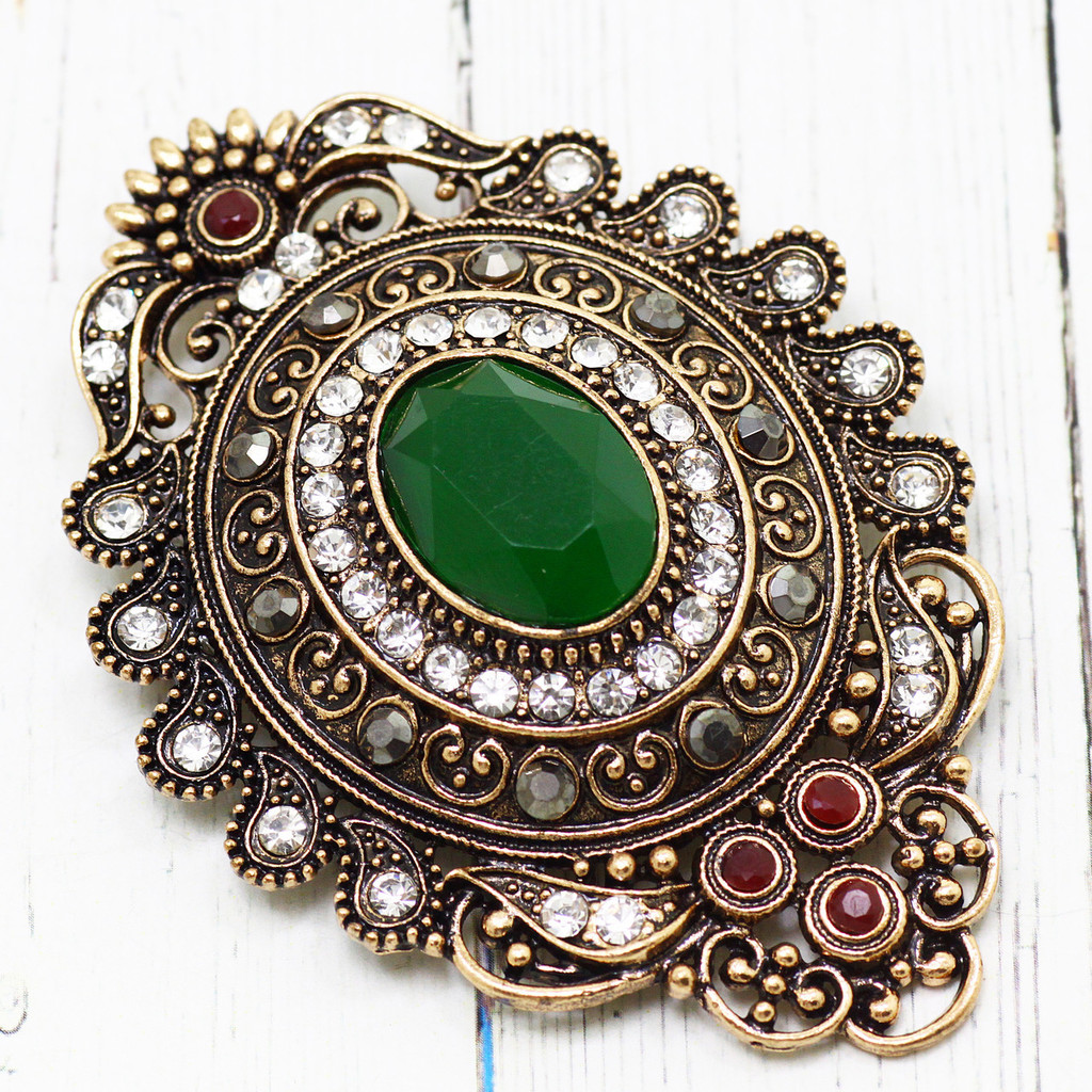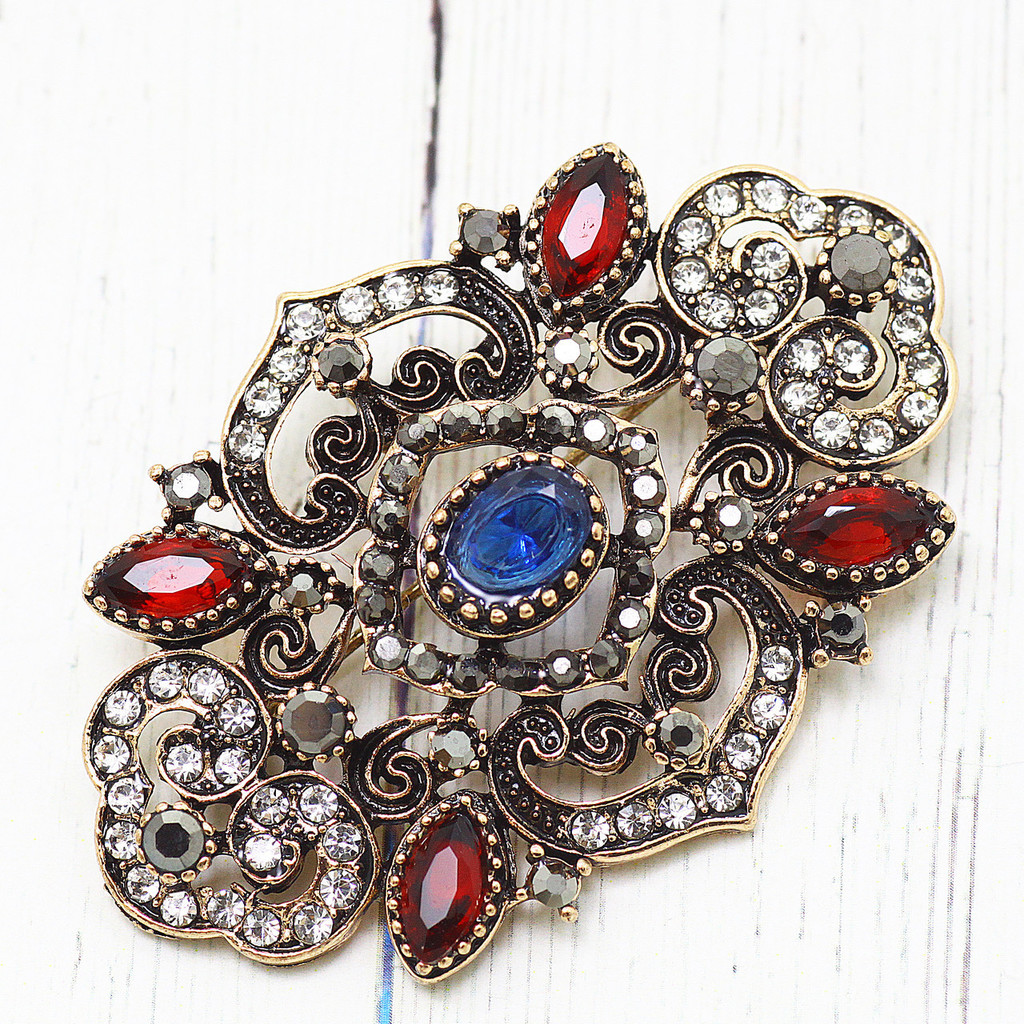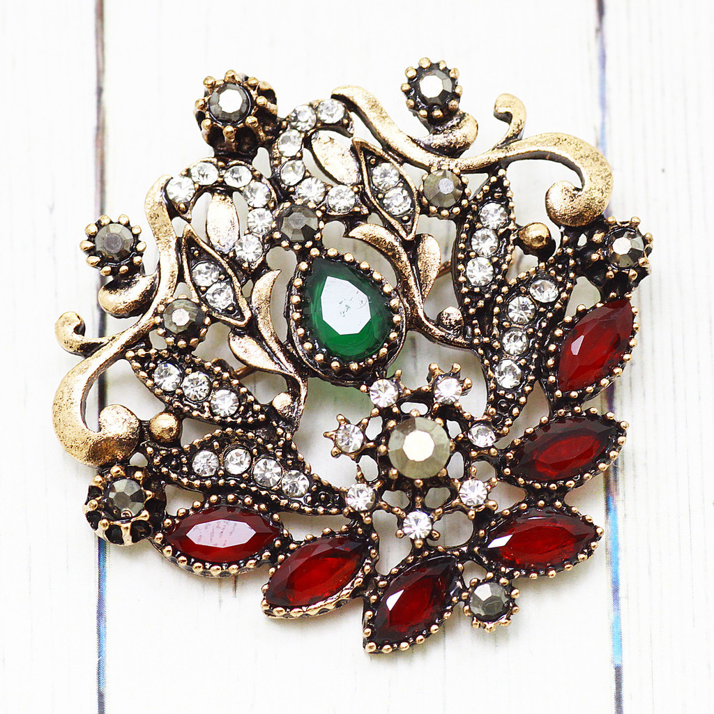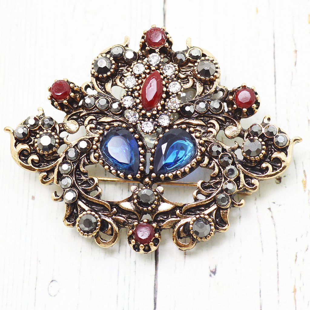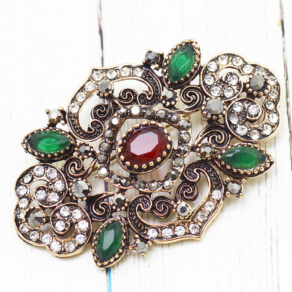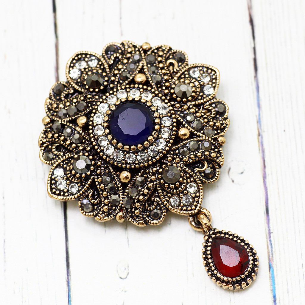 Красивая брошь восточного стиля  из специального гипоаллергенного ювелирного сплава,который покрыт золотом или устойчивым родиевым покрытием, предотвращающим раздражение кожных покровов..