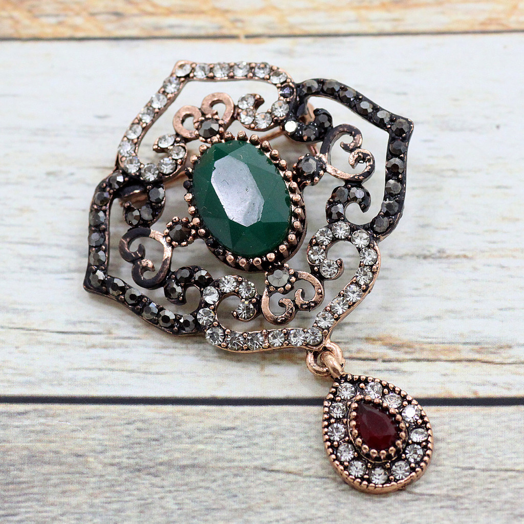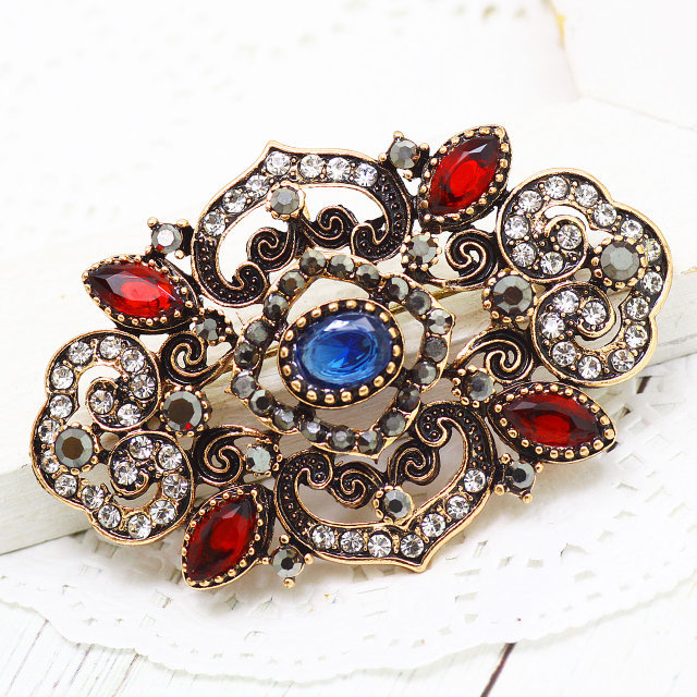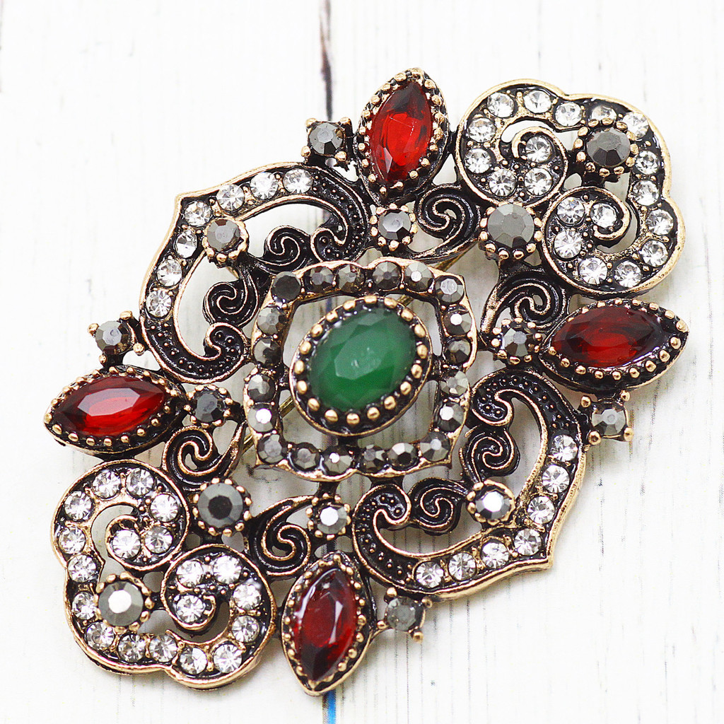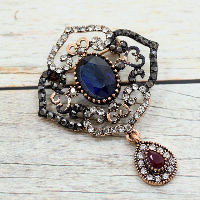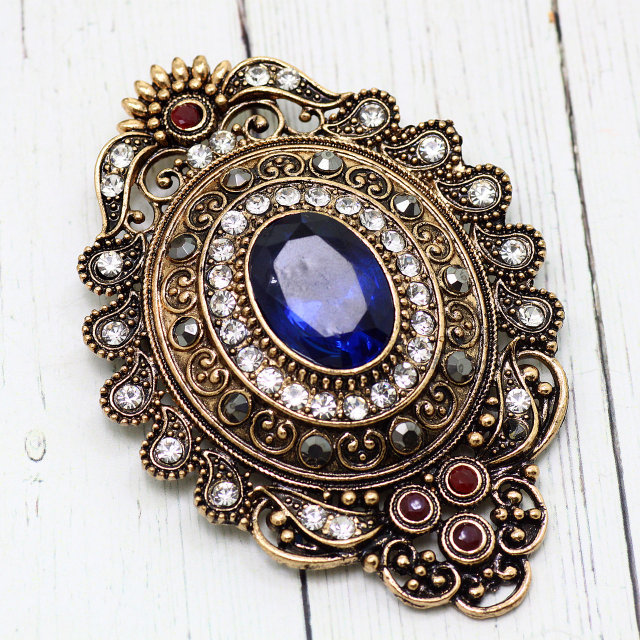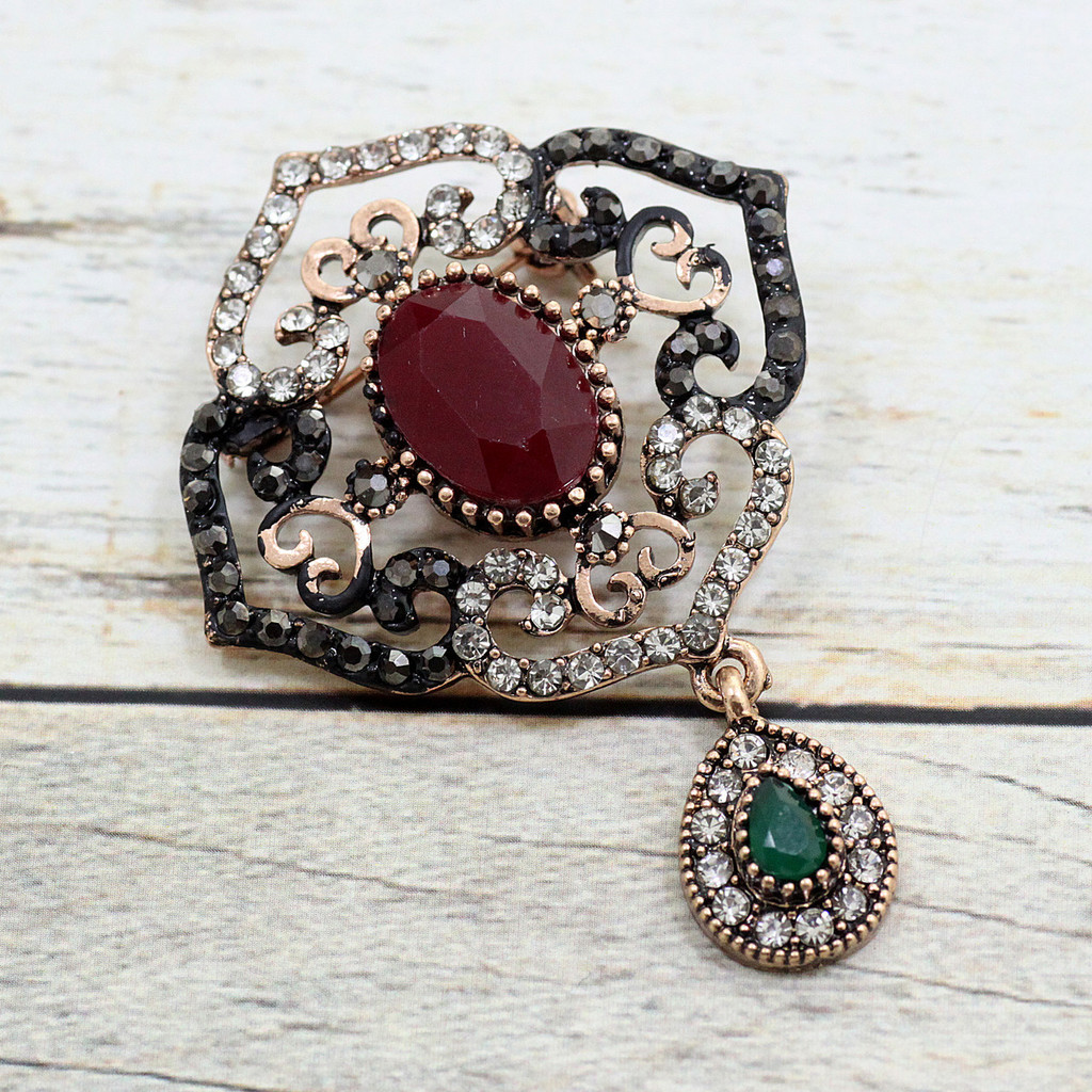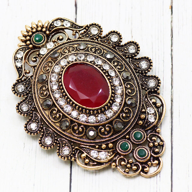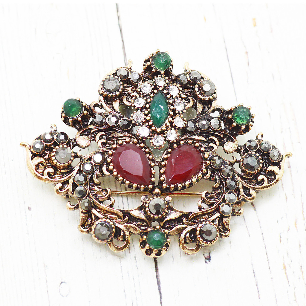 Красивая брошь восточного стиля  из специального гипоаллергенного ювелирного сплава,который покрыт золотом или устойчивым родиевым покрытием, предотвращающим раздражение кожных покровов..