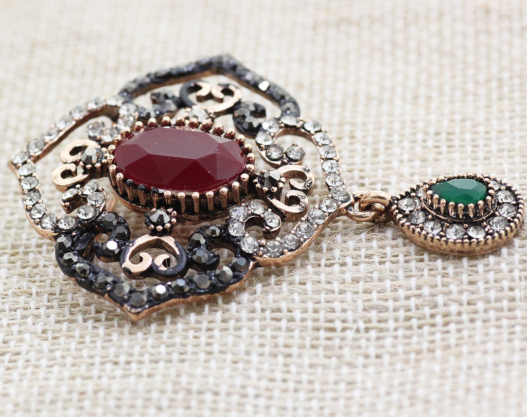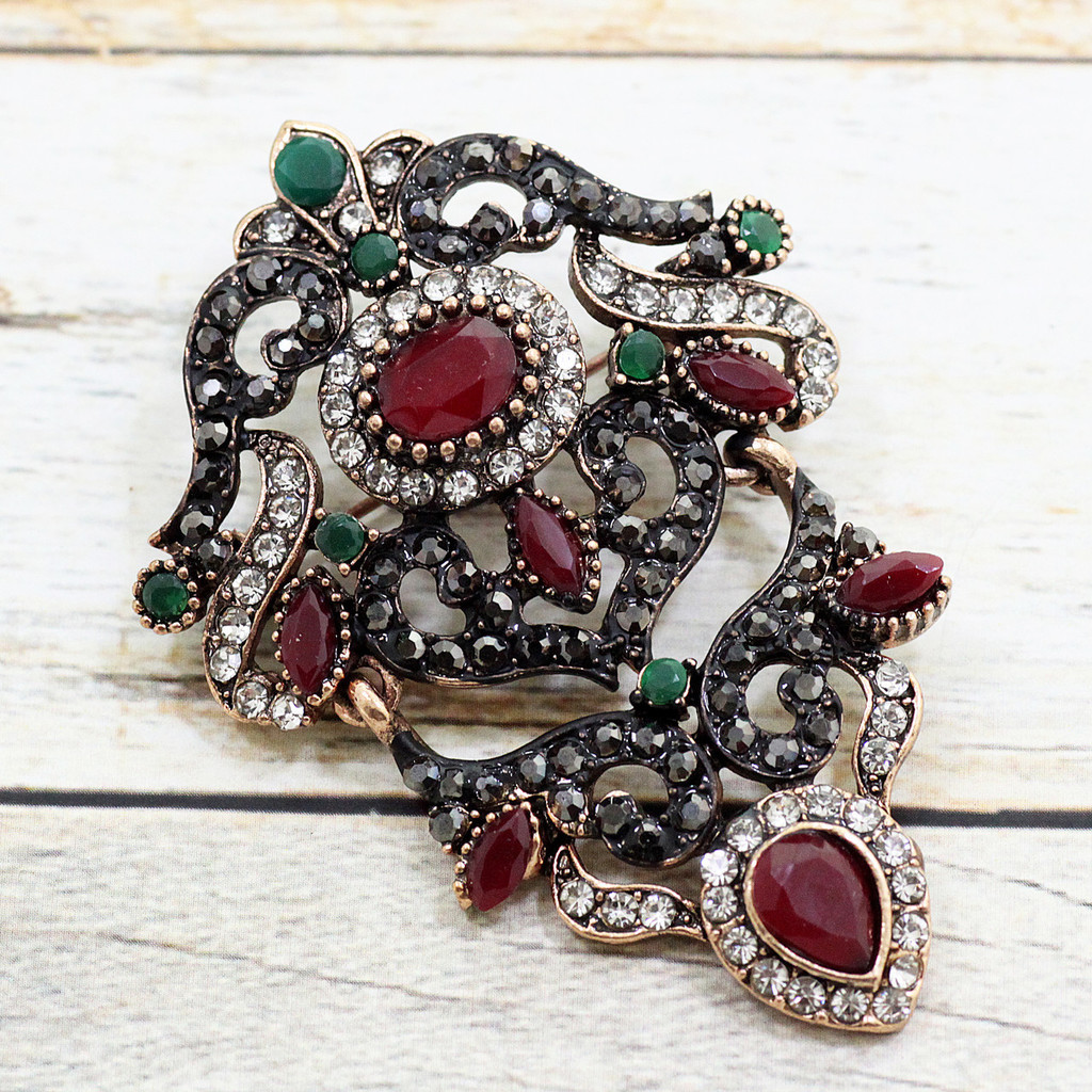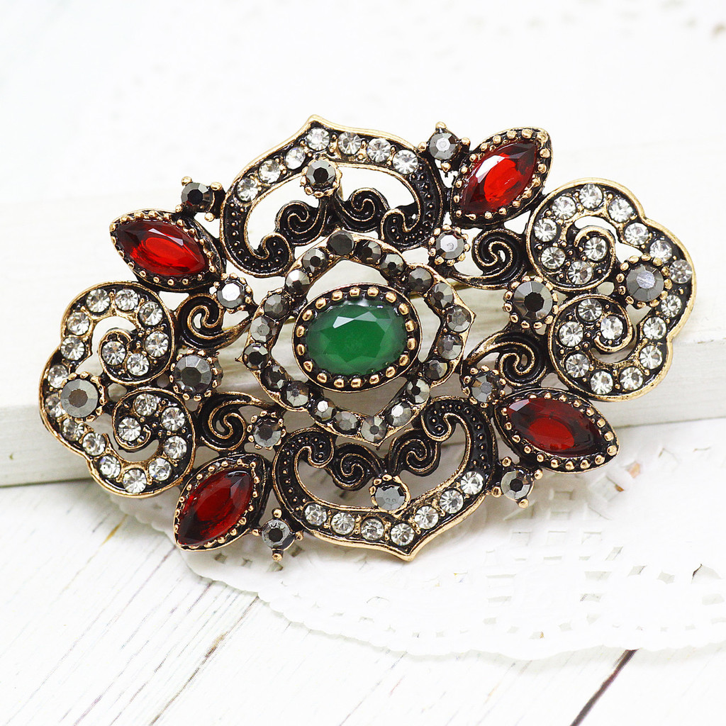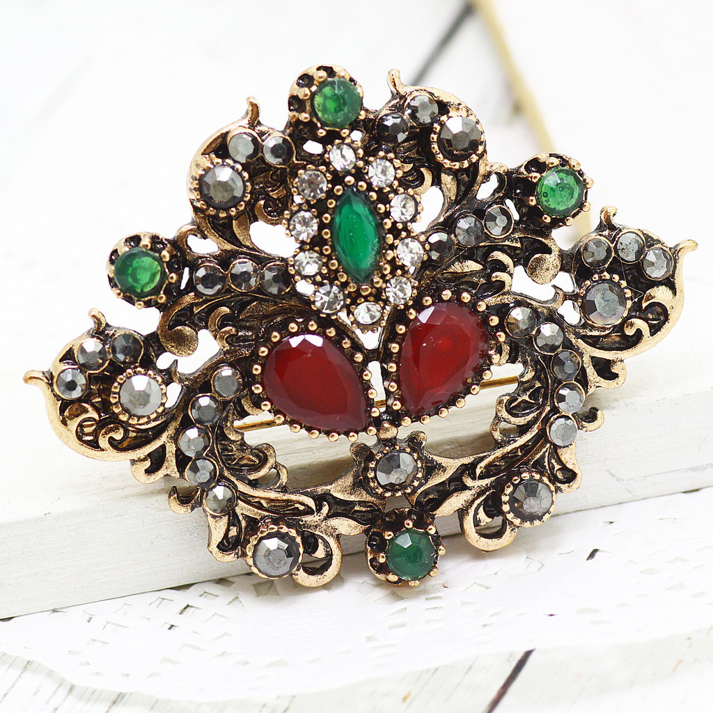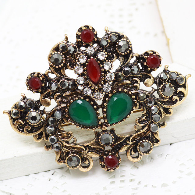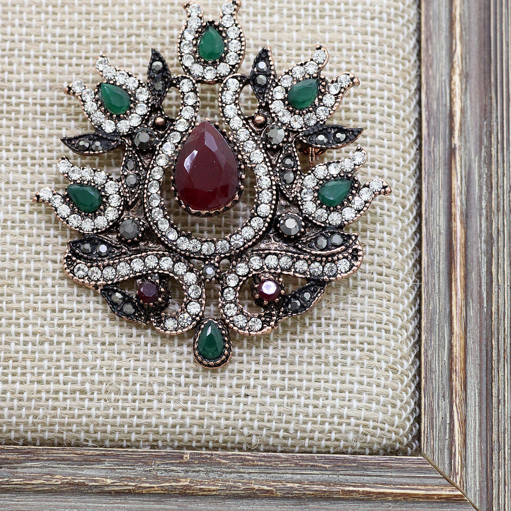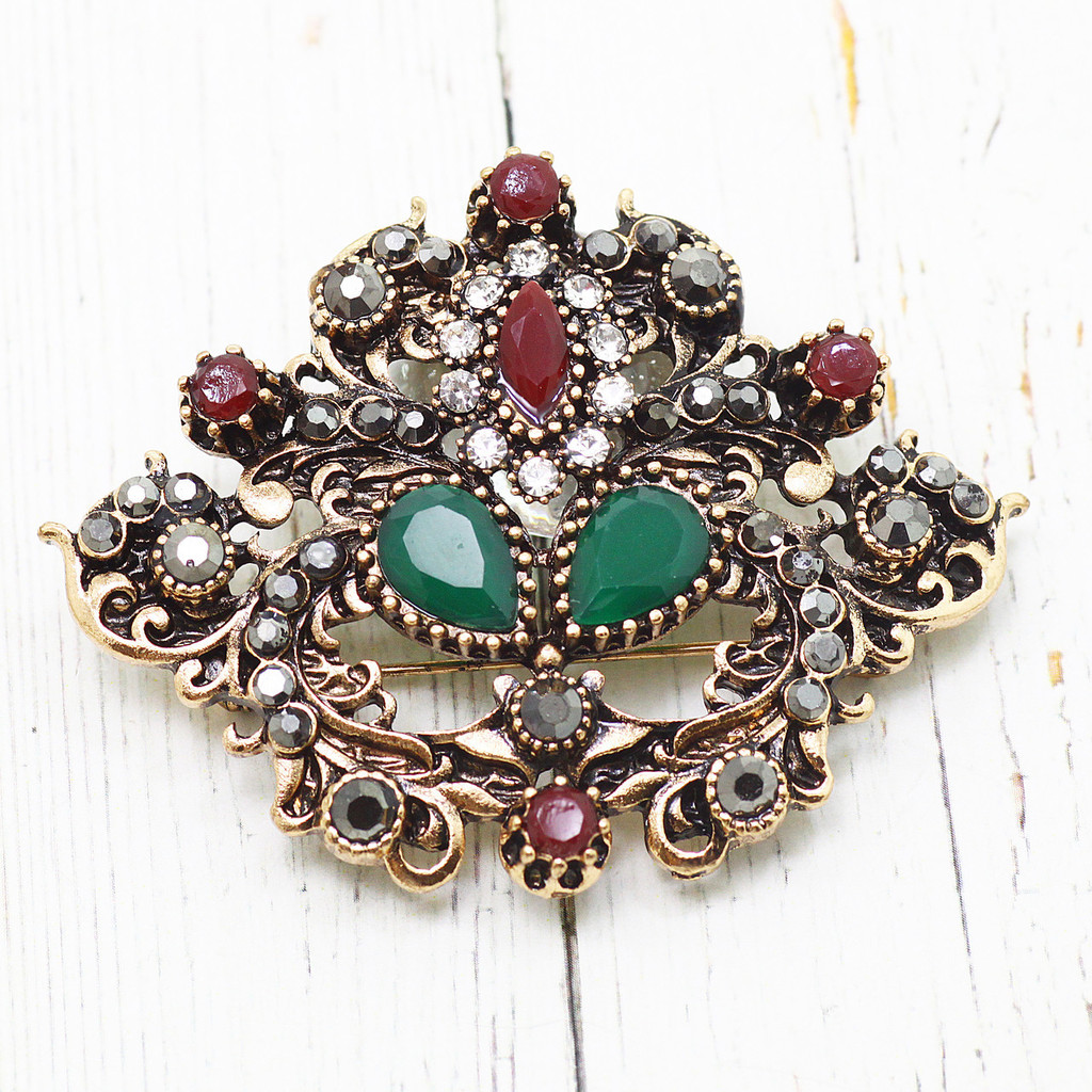 Красивая брошь восточного стиля  из специального гипоаллергенного ювелирного сплава,который покрыт золотом или устойчивым родиевым покрытием, предотвращающим раздражение кожных покровов..